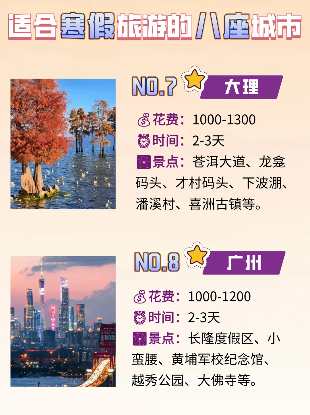 您现在的位置是:首页 > 国内旅游目的推荐 > 正文 国内旅游目的推荐 适合寒假旅游的八个城市🏙️不能错过🔥 admin2025年01月17日 20:14:01国内旅游目的推荐38 适合寒假旅游的八个城市🏙️不能错过🔥 马上就要放寒假啦!!可以提前计划出去旅游了,整理了八个冬天适合出游的城市给大家参考!!适合大学生穷游、亲子带娃出游、情侣出游~ 建议@你的旅游搭子一起冲‼️ #适合冬天去旅游的城市 #一生中值得去旅游的地方 #秋冬季旅游 #冬天旅游胜地 #跟着季节游中国 #学生党旅游 #值得一去的景点 #旅游攻略 #旅游 #亲子游 #长沙 #带小孩旅游 #寒假 #寒假旅游 转载请说明来源于"旅荐网",部分内容转载自网络,如有侵权请联系qlwl@foxmail.com删除 本文地址:https://www.15386.cn/post/28535.html 上一篇 秋天旅游shou选❗️❗️超好玩的16个城市 下一篇 寒假大学生出游计划【省💰版】 相关文章 一图看懂四天三晚桂林旅游攻略 大理旅行升级版攻略来啦! 淮北旅游年卡带你去遛娃!2026 遛娃指南就看这一篇! 攻略 国内小城,老外扎堆?庐山保姆级旅行指南,一文看懂景区玩法与行程规划 2026 新东方快车旅行攻略|躺着游遍南北疆 广州旅行全攻略 延安 #红色历史遗迹 #杨家岭旅游攻略 第一次到青岛旅游的宝子们,保姆级攻略一定要看. 旅游攻略 #穿越路线沙漠戈壁 #赤谷黄河水车 攻略 国内小城,老外扎堆?三峡大坝保姆级旅行指南,一文看懂景区玩法与行程规划 发表评论 取消回复 评论列表 这篇文章还没有收到评论,赶紧来抢沙发吧~