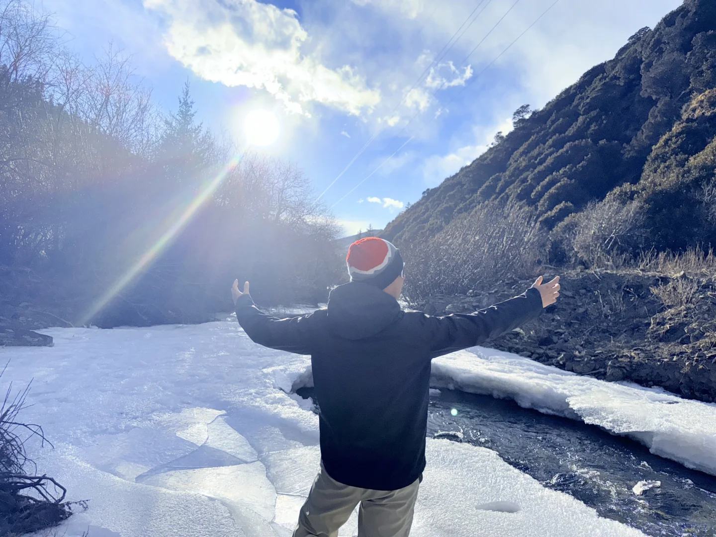 凌晨5点的闹钟⏰起了个大早\n下楼看到没雪开心了一下,到达景区门口等待5.30的观光车,结果被告知雪大封山,不止日出没得看,白天也不会安排车了。\n怪不得大家都说这地方太凭运气了\n#达瓦更扎云海与日出 #达瓦更扎 #神木垒#成都周边游#雪山