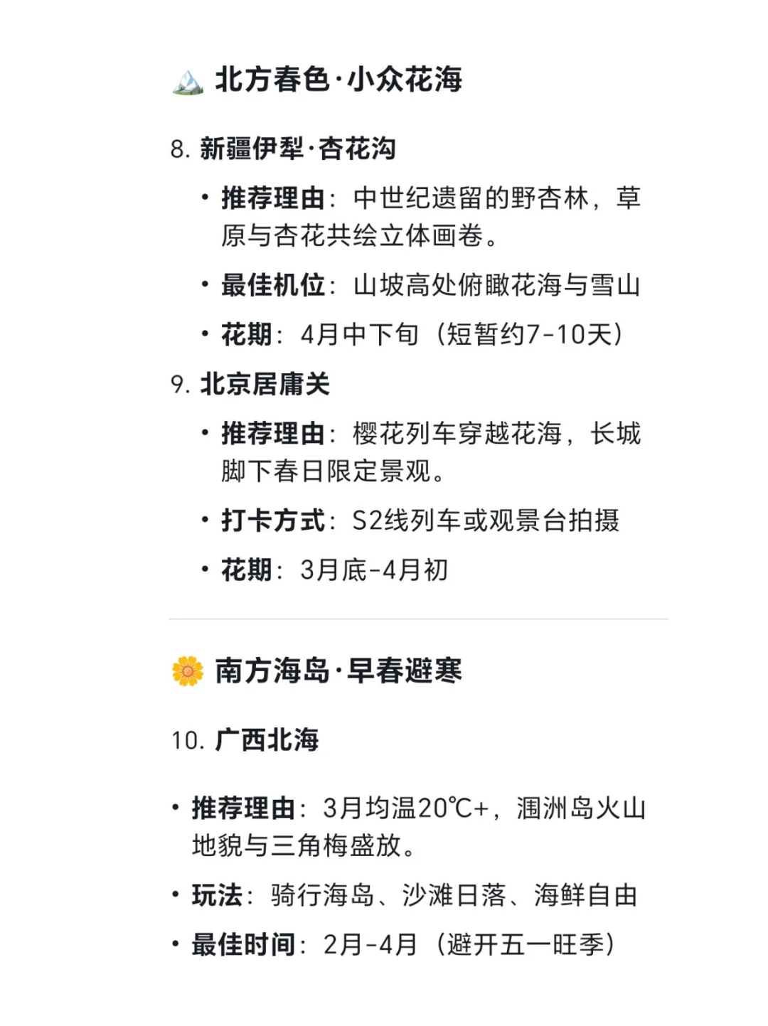 Top1:黄山 (归来再去别的山真的没意思了)\nTop2:阳朔(从早上坐高铁钻出山的那一刻就开始被山水震撼🫨)\nTop3:青岛小鱼山/信号山(红瓦绿树 碧海蓝天的最佳观景地点)\n欢迎补充!\n#此景只应天上有 #一生必去的地方 #旅游 #旅游推荐 #旅游拍照 #游赏绝美自然风光 #一起领略祖国的大好河山吧 #一半在仙境一半在人间