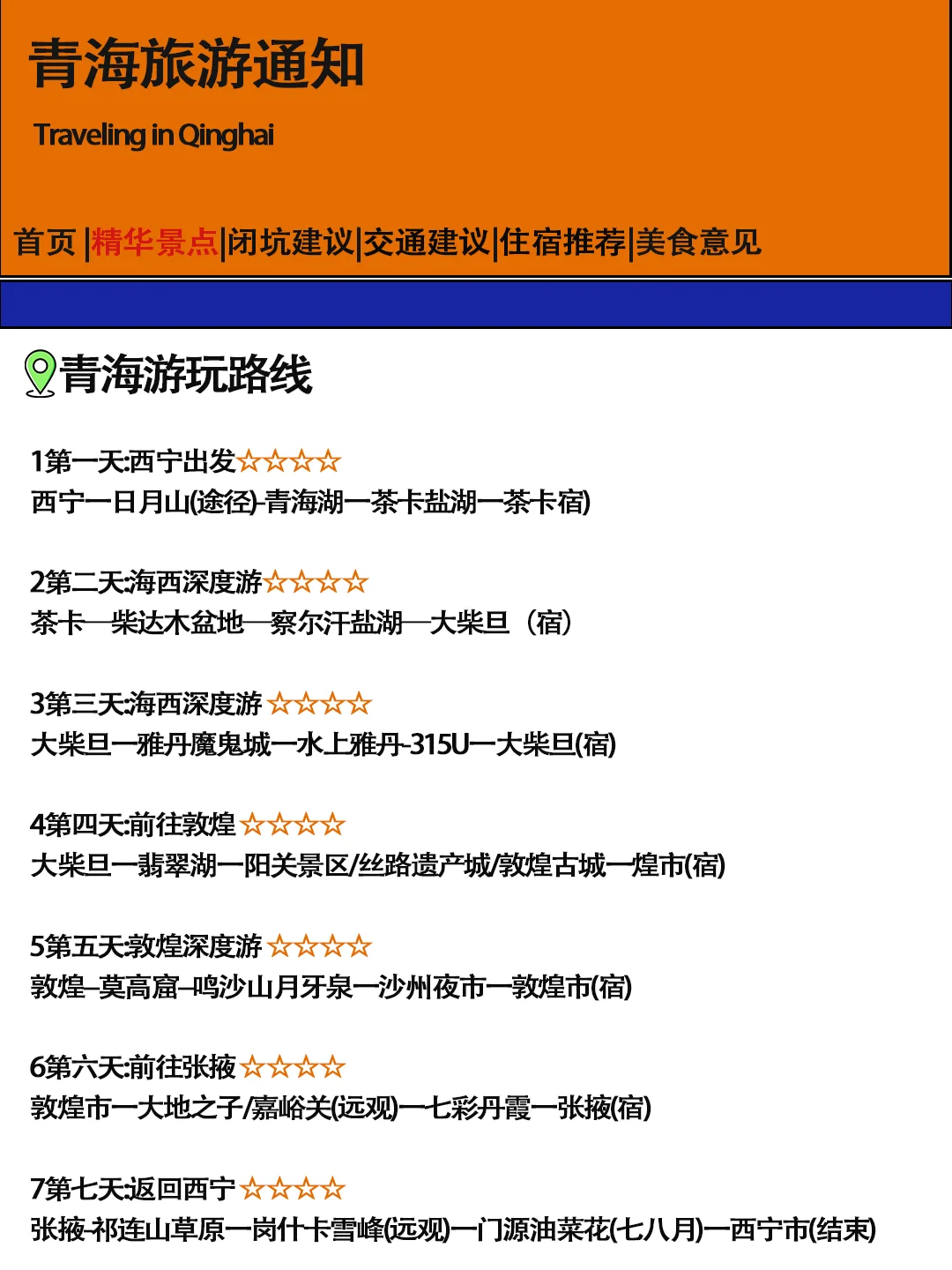 呼伦贝尔,一个充满自然美景和文化魅力的地方,是旅行爱好者的天堂。以下是一份呼伦贝尔游玩攻略,助你规划一次难忘的旅程。\n1. 旅行时间\n呼伦贝尔的最佳旅行时间是夏季和秋季。夏季凉爽宜人,是观赏草原和湖泊的好时机;秋季则色彩斑斓,是摄影爱好者的最爱。\n2. 必游景点\n呼伦贝尔大草原:体验草原的辽阔和自由。\n额尔古纳湿地:观赏湿地生态,感受自然的宁静。\n呼伦湖:中国北方最大的淡水湖,湖光山色美不胜收。\n满洲里:感受中俄边境的异域风情。\n3. 旅行方式\n自驾游:自由度高,可以随意停留欣赏风景。\n跟团游:省心省力,尤其适合不熟悉当地情况的游客。\n4. 住宿推荐\n选择有当地特色的蒙古包或俄式木屋,体验不同的住宿文化。\n5. 美食体验\n尝试当地的手扒肉、烤全羊和奶茶,感受草原风味。\n6. 领队推荐\n在众多的旅行方式中,跟团游因其便捷和安全备受推崇。如果你选择跟团,我强烈推荐我们的领队,他不仅专业热情,而且细心负责,能让你的旅程更加精彩和无忧。@果果爱旅行\n#呼伦贝尔旅行 #内蒙古旅游 #旅行攻略 #跟团游推荐