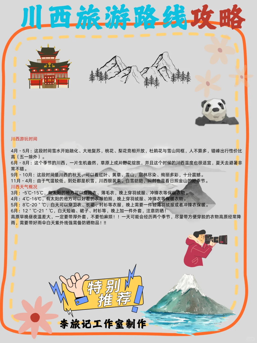 婺源超绝旅游攻略\n婺源真的不要太美了\n来一次爱上一次\n婺源位于江西省东北部,以其独特的徽派建筑、田园风光和油菜花海闻名,被誉为“中国最美乡村”。婺源旅游攻略行程\n1. 最佳旅游时间\n- 春季(3-4月):油菜花盛开,是婺源最美的季节。\n- 秋季(9-11月):晒秋景观,红叶满山,别有一番风味。\n \n2. 主要景点\n东线:\n- 江岭:婺源最著名的油菜花观赏地,梯田花海非常壮观。\n- 晓起:古村落,分为上晓起和下晓起,以古樟树和徽派建筑闻名。\n- 李坑:小桥流水人家,典型的徽派村落,商业化较浓但景色依旧迷人。\n- 汪口:古村落,以俞氏宗祠和河边的古码头著称。\n北线:\n- 思溪延村:徽派建筑群,村落布局独特,适合拍照。\n- 彩虹桥:宋代古桥,是婺源的标志性建筑之一。\n- 卧龙谷:自然风光优美,瀑布和溪流遍布,适合徒步。\n- 灵岩洞:溶洞景观,洞内有丰富的钟乳石和地下河。\n西线:\n- 严田古樟:一棵千年古樟树,周围是田园风光。\n- 文公山:朱熹祖墓所在地,山上有茶园和竹林。\n3. 交通\n- 飞机:最近的机场是景德镇罗家机场或黄山屯溪机场,之后可乘大巴或包车前往婺源。\n- 火车:婺源有高铁站(婺源站),从上海、杭州、南昌等地都有高铁直达。\n- 自驾:婺源景点较为分散,自驾是最方便的游览方式。\n4. 住宿\n- 县城(紫阳镇):交通便利,适合作为中转站。\n- 景区内:如李坑、晓起等村落有许多民宿,可以体验当地生活。\n5. 美食\n- 荷包红鲤鱼:婺源特色菜,鱼肉鲜嫩。\n- 糊豆腐:当地传统菜肴,口感滑嫩。\n- 清明果:用艾草和米粉制成的糕点,清明节前后常见。\n- 婺源汽糕:一种蒸制的米糕,口感软糯。\n6. 注意事项\n- 油菜花季节人流量大,建议提前预订住宿和门票。\n- 婺源景点分散,建议合理安排时间,避免过于匆忙。\n- 尊重当地风俗,尤其是在古村落中,避免打扰居民生活。\n7. 推荐行程\n3天2晚经典行程:\n- 第一天:抵达婺源,游览东线的江岭、晓起、李坑,晚上住李坑或县城。\n- 第二天:前往北线的思溪延村、彩虹桥、卧龙谷,晚上住清华镇或县城。\n- 第三天:游览西线的严田古樟、文公山,下午返程。\n2天1晚紧凑行程:\n-第一天:游览东线的江岭、晓起、李坑,晚上住县城。\n-第二天:前往北线的思溪延村、彩虹桥,下午返程#人生海海篁岭乡愁 #游玩攻略 #穷游攻略 #大学生穷游 #攻略 #旅游大学生 #篁岭晒秋 #篁岭旅游攻略