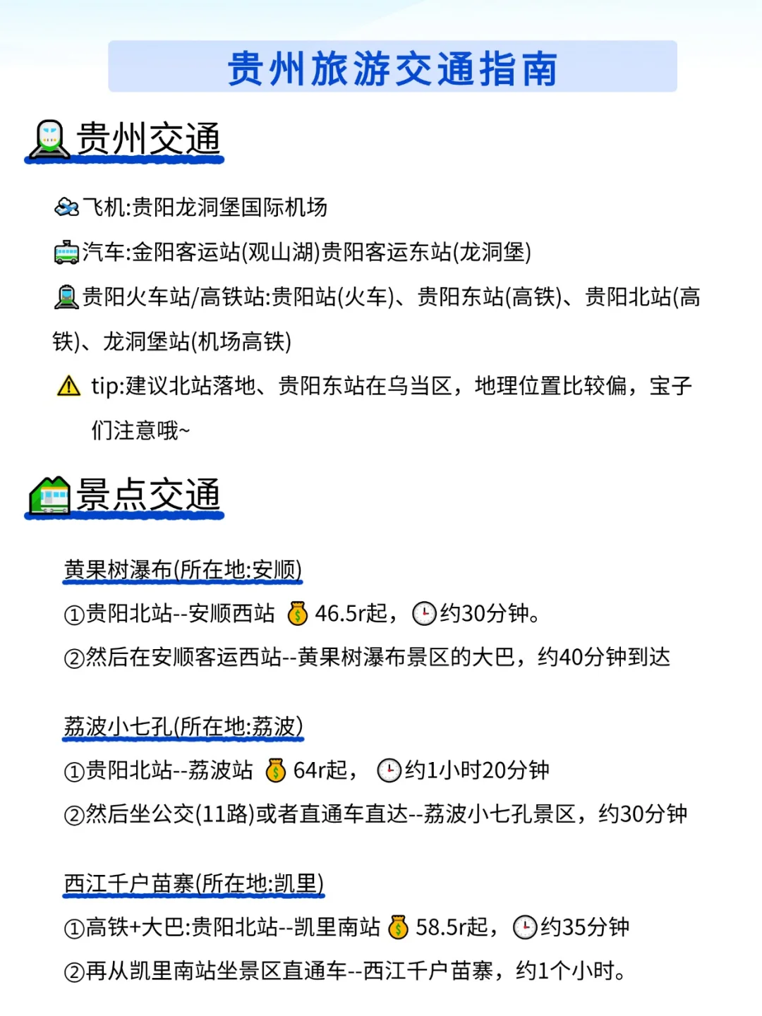 女生一人6天5夜旅游,全程不需要包车,都有公共交通工具乘坐,不怕被坑~~总花费大概3k💰\n🏨3.19-20楠溪公寓(人民广场店) 💰232R\nDay1 3.19周三 景德镇\n广州东9:10-13:57景德镇北 💰615R\n14:00高铁站→打车💰17.7R→14:30公寓放行李→15:30雕塑瓷厂→17:00陶溪川→18:30陶阳新村→公寓\n陶阳新村的集市最便宜,手串10R5条,陶瓷花10R6朵,小花瓶10R3个,宝们不要买贵了哦;雕塑瓷厂的也比较便宜,种类多一些;陶溪川的主要以原创为主,会贵一些\n \nDay2 3.20周四 景德镇\n9:40抚州弄→10:10陶阳里💰53R、御窑博物馆→12:00抚州弄→13:30陶瓷博物馆→16:30沿江东路→陶阳新村→公寓\n景德镇不大,大部分景区都能骑共享电动车就到,感觉也不需要特地租电动车🛵,大家看情况选择嗷\n \nDay3 3.21周五 婺源\n🏨茗家别苑客栈(黄山北站店)💰101R\n9:09景德镇北站→9:33婺源站💰24R→10:20巴士💰19R→11:20游客中心寄存行李💰5R→B索道→篁岭💰170R→15:30巴士💰19R→16:55婺源站💰35R→17:19黄山北站→客栈\n说实话篁岭不太值得,地小人多票贵,如果不是很有执念想去的话,建议直接去徽州\n \nDay4 3.22周六 徽州\n🏨寄君居·Family庭院民宿(宏村店)💰145R\n10:48黄山北站→10:59黟县东站💰13R→西递💰90R→宏村💰90R→客栈\n \nDay5 3.23周日 黄山\n🏨茗家别苑客栈(黄山北站店)💰100R\n宏村→06:20大巴💰15R→7:00换乘中心→超市寄存行李💰15R→7:20黄山南门💰379R→7:45云谷寺索道→8:08下缆车→8:35始信峰→8:57梦笔生花→10:00光明顶→13:00迎客松→13:35玉屏索道下→13:45南门下行大巴💰19R→15:30大巴💰31R→16:30黄山北站→客栈\n黄山早点去几乎不用排队,体验感会更好,拍照也更好看\n \nDay6 3.24周一 返广\n黄山北站10:27-15:56广州东站 💰631R\n这一趟下来有踩雷的,也有美丽风景的意外惊喜,总体还是很值得的,希望宝们都能有美好的旅游体验#旅游攻略 #景德镇 #徽州 #黄山 #宏村 #旅游推荐 #春天就要上春山 #黄山攻略#特种兵旅游