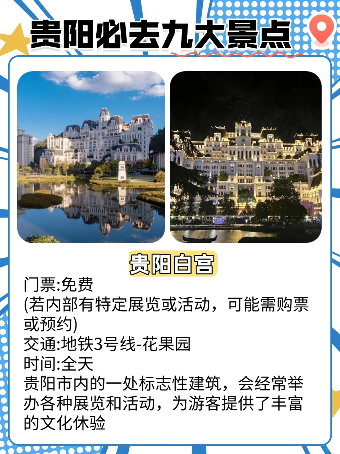 一篇解锁江西省全部景点城市\n————————————\n🏯 **南昌|英雄城的古今碰撞**\n✅必玩:滕王阁+万寿宫+秋水广场\n🌟亮点:\n▫️夜登滕王阁看赣江两岸灯光秀(每周五/六晚)\n▫️万寿宫历史文化街区吃白糖糕+洪都奶茶\n🚅交通:南昌西站到长沙1.5h/武汉2h\n————————————\n⛰️ **九江|庐山下的江湖之城**\n✅必玩:庐山+东林寺+庐山西海\n🌟季节TIPS:\n▫️5月庐山杜鹃花海 ▫️10月西海千岛湖秋色\n⚠️避坑:别在庐山牯岭镇买茶叶!\n————————————\n🌾 **上饶|山水与田园的双重暴击**\n✅必玩:婺源篁岭+三清山+望仙谷\n📸出片指南:\n▫️望仙谷悬崖民宿夜景(假装在仙侠世界)\n▫️石城晨雾机位(11月枫叶季限定)\n————————————\n🏺 **景德镇|手作人の精神故乡**\n✅必玩:御窑博物馆+陶溪川+瑶里古镇\n🔥体验:\n▫️丙丁柴窑光影拍摄 ▫️烧玻璃DIY(人均150r)\n🍶伴手礼:手绘青花杯(乐天集市砍价技巧:对半起!)\n————————————\n🛶 **鹰潭|道文化&悬棺之谜**\n✅必玩:龙虎山+上清古镇\n🌟隐藏玩法:\n▫️晨练天师府太极课 ▫️《寻梦龙虎山》实景演出\n🚌交通:高铁站→景区直通车30分钟\n————————————\n⛺ **萍乡|云端草原徒步圣地**\n✅必玩:武功山+孽龙洞\n🎒装备:\n▫️5-10月带冲锋衣(山顶夜间10℃以下)\n▫️反穿路线必备登山杖+护膝\n————————————\n🏮 **赣州|客家文化活化石**\n✅必玩:通天岩+郁孤台+灶儿巷\n🍜吃货线:\n▫️文清路嗦安远三鲜粉 ▫️大余烫皮包酸菜\n📌冷知识:宋代古城墙比西安更完整!\n————————————\n🌿 **吉安|红色圣地与山水诗画**\n✅必玩:井冈山+渼陂古村+羊狮慕\n🚗自驾路线:\n▫️井冈山→遂川桃源梯田→万安影视城\n🎫门票福利:井冈山65岁以上免票\n————————————\n💡老表の终极建议\n✔️省内高铁站名≠景区名(如“婺源站”到篁岭还要1h车程)\n💗(点赞收藏加关注,下期出每个景点详细攻略)\n#江西旅游 #旅行攻略