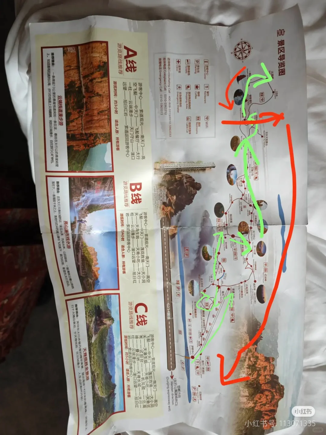 📍景区概况\n景区位于山西省长治市壶关县太行山大峡谷景区内,被誉为“太行第一雄峡”,集险峻峡谷、碧水飞瀑、高空体验于一体,妥妥的避暑胜地!!!\n \n🚶♀️游玩路线推荐\nA线(相对轻松版):\n景区入口→景交车至码头→游船(20分钟)→下船后打卡“太行之心”→步行至索道站(约1.5小时)→高空拐弯索道(20分钟)→玉皇阁→徒步下山(约40分钟)/坐空中巴士 →天空之城电梯下山→返程\nB线反向游玩,适合徒步爱好者(相对较累)\n \n💰费用明细\n景区门票100元(推荐购买山西一卡通)\n景区景交180元(往返观光车票➕游船票➕索道票➕电梯票)\n \n🚌交通指南\n1. 自驾\n- 长治市区出发:走长治绕城高速→平长高速(壶关方向),全程约1.5小时\n- 太原/郑州方向:导航“太行山大峡谷八泉峡景区”,全程约3-4小时\n2.公共交通\n目前淡季没有旅游专线,位置偏远,推荐报一日游\n旺季应该会有旅游专线可以提前了解一下\n \n📝小tips\n1️⃣如果膝盖不是很好或者年纪稍大的朋友推荐下山坐空中巴士,不然有一段下山路台阶相对比较陡走起来还是比较费腿的!!!\n2️⃣拍“太行之心”记得要用广角镜头!!!\n3️⃣防滑运动鞋必备!部分路段湿滑,注意安全!!!\n \n夏天想要去避暑的朋友们,选择八泉峡,让您体验“抬头张家界,低头九寨沟”,也希望这份保姆级攻略可以帮助到大家!!!\n#太行山 #八泉峡 #徒步丈量世界 #感受大自然的鬼斧神工 #鬼斧神工大自然 #五一出游 #端午出游 #暑假出游