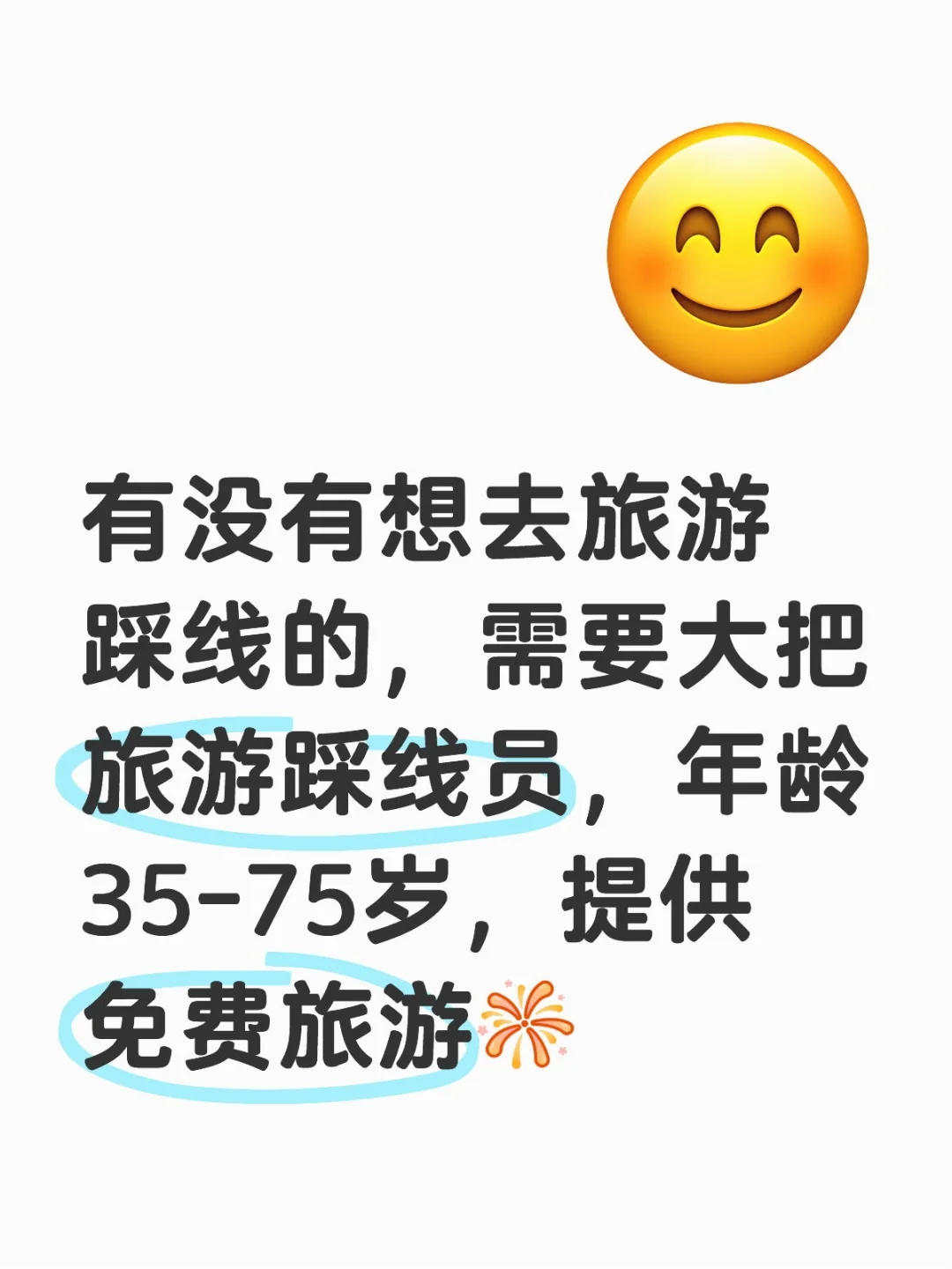 嗨嗨,\n这里是专注服务50岁+用户出游的携程老友会\n \n现在我们全新推出的「老有意思旅行团」深度主题游系列产品,需要招募一批多才多艺的领队,来辅助专业导游,为50岁+的团员们提供全程陪伴和服务,并提供充足的情绪价值,让广大子女放心将自己的爸妈交给我们\n \n✈️时间自由,带薪旅行\n不限学历,不限年龄(年满18岁即可)\n只需要你是个多才多艺且耐心的“大孝子”,带着老友们云游世界\n \n我们希望你:\n1. 热爱旅行,旅行经验丰富,带爸妈出去旅行经历≥3次\n2.亲和力强,有耐心,社交能量高,擅长与叔叔阿姨热聊\n3.擅长摄影,会基础的短视频制作,曾给妈妈拍出过满意的朋友圈九宫格照片,因为你需要给有需要的团员拍照、修图、剪辑小视频、协助编辑朋友圈\n4.体力不输刘晓庆,能歌善舞,擅长KTV复古金曲\n5.够细心,行前了解每个团员信息和注意事项,每日提醒天气、添衣,备热水\n6.其他更多陪爸妈旅行的独特加分技能\n \n投递要求:\n1. 简历需着重强调自己旅行经历\n2. 应聘者需准备一篇应聘图文或者至少30s的自我介绍视频,发布在小红书并@携程老友会,带话题#带薪旅游应聘 #爸妈旅行守护官,投递时附上发布链接\n3. 请将个人简历与作品集一起投递至邮箱:FriendsClubHR@trip.com\n \n如果你也喜欢和老小孩们一起旅行\n欢迎加入我们!\n \n#招聘 #兼职 #大厂 #携程 #老友会 #在线招人