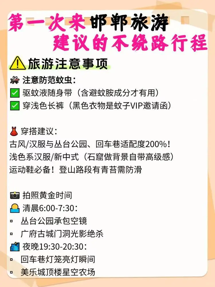 #令人难忘的景点\n🟨本以为洛阳已经够美了\n直到我去到了大同\n这里是北魏皇城 辽金陪都\n有着太多古建筑遗址 底蕴以及美食\n如果你有2⃣️-3️⃣日的时间到这里好好走走\n.\n🟨游玩顺序:大同古城👉🏼华严寺👉🏼悬空寺\n👉🏼恒山👉🏼云冈石窟\n.\n🟨古城\n📍山西省大同市平城区\n▪️距今2700年历史 去之前完全低估了\n古城墙 清远门 华严寺 魁星楼 永泰门\n九龙壁 清真大寺 善化寺 净土寺\n平城记忆馆 都在这里 很宏大保存也比较完好\n🟨华严寺\n📍 山西省大同市平城区大同古城下寺坡街459号\n🈺️8:30-18:00\n▪️其实就位于古城内 西侧\n只是茗气太大 我单独列出来了\n现存的辽金时期蕞大的佛殿\n建于1038年 这也是黑悟空的同款机位\n寺院内的壁画 佛像 建筑都很考究\n很有历史的沧桑感⏳\n连梁思成先生都称它为“海内孤品”\n🟨悬空寺\n📍 山西省大同市浑源县东南郊恒山脚下\n🈺️8:00-18:00\n▪️建于北魏太和十五年\n这座悬崖峭壁上的寺庙看似岌岌可危\n实际上历经1500年依然屹立不倒\n心思这究竟是怎么研究出来的呢\n这里同样也是黑悟空的取景地\n台阶有些抖 上下注意安全\n登上悬空寺让眼睛与心灵同时感到震撼\n🟨恒山\n📍 山西省大同市浑源县203省道\n▪️五岳之一的北岳恒山⛰️\n享有人天北柱之称 主峰高2016.1米\n磅礴壮丽的造型所震撼到\n少了一丝秀丽 多了几分苍莽\n这里也有寺庙建在峭壁上\n🟨云冈石窟\n📍 山西省大同市云冈区云冈镇1号\n🈺️8:30-16:30\n▪️这里一点不亚于龙门石窟\n距今1500年的石窟\n每一个凿痕都是当时工匠们的信仰与匠心\n石窟规模宏大 是四大石窟之1⃣️\n当时看到这一尊尊佛像和建筑\n仅仅震撼俩字已经不足以表达了 美到失语\n不可错过的打卡点 蒂20窟 露天大佛\n也可与大佛合影拍出人生大片📷\n.\n🟨除此外 这边的美食很多也很好吃\n刀削面 羊肉烧卖 羊杂汤\n黄米凉糕 浑圆凉粉 莜面栲栳栳\n过油肉拌面 广灵豆腐干等\n.\n🟨如果有时间还可以去土林 大同万人坑\n还可以去朔州的应县木塔等地\n这座城市值🉐️一来\n它 大有不同\n#山西旅行 #大同旅行 #太原周边游 #北京周边游 #呼和浩特周边游 #石家庄周边游 #中国古都天下大同 #周末去哪儿 @薯队长 @本地薯 @小红书成长笔记 @走走薯