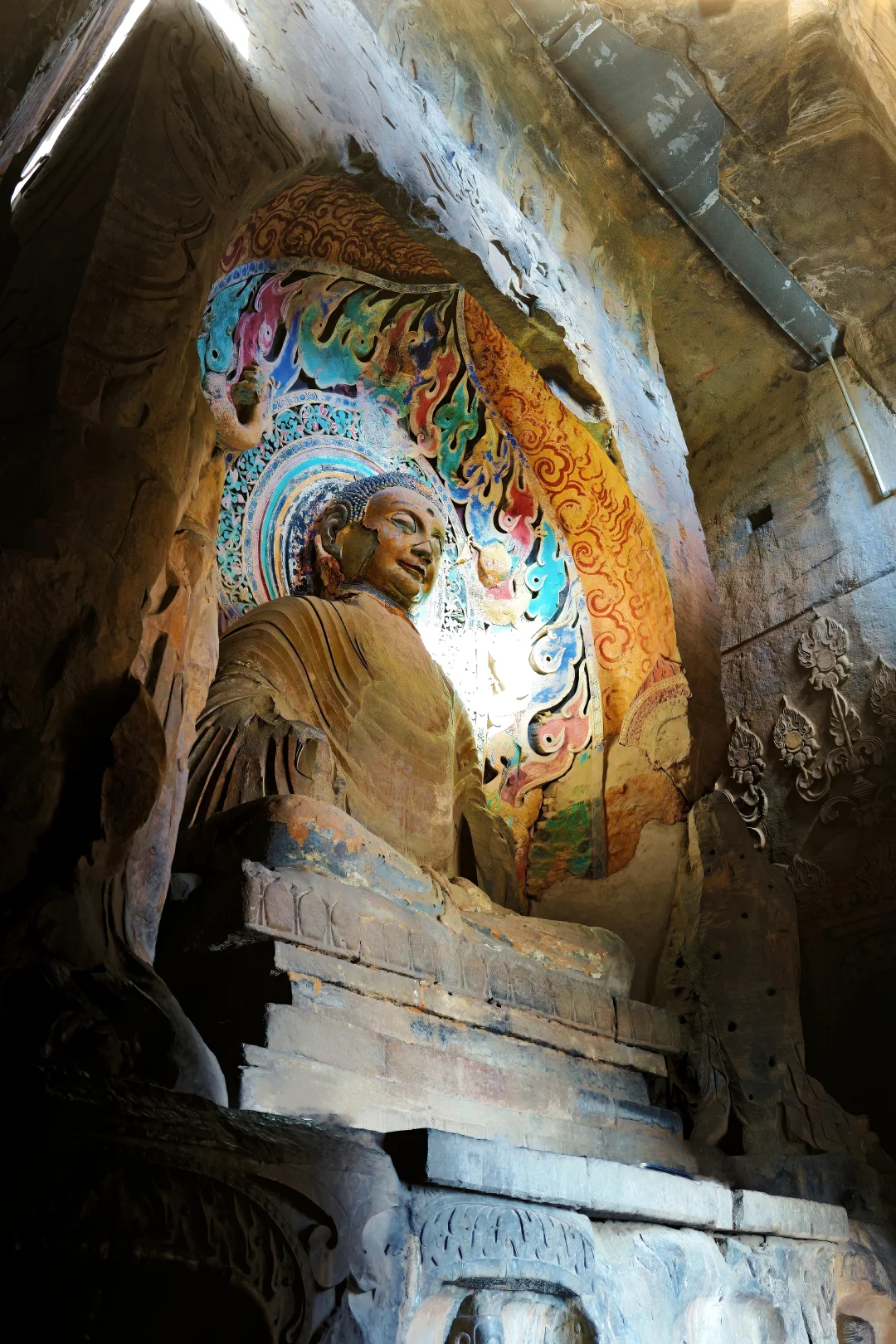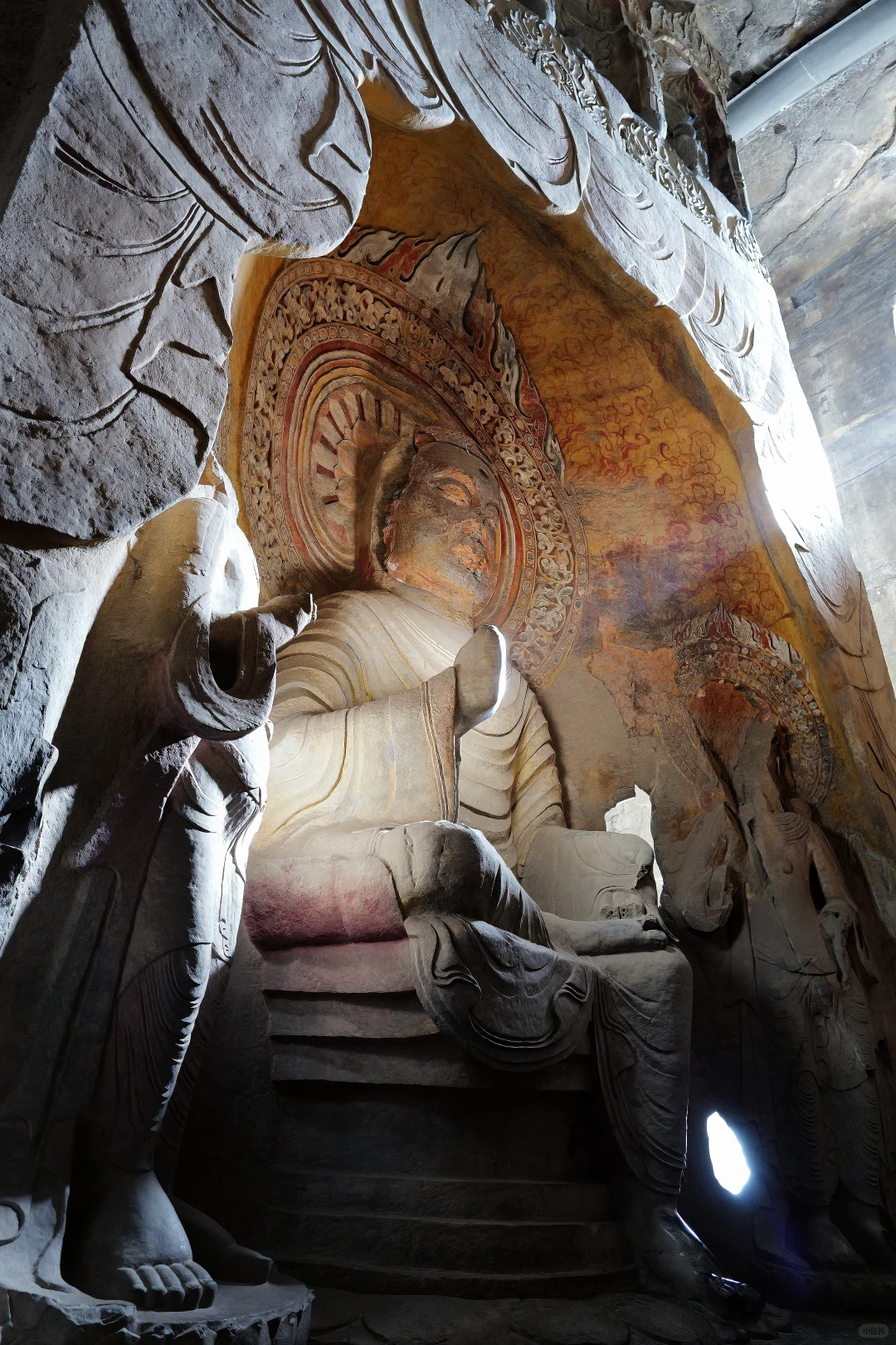 1️⃣ 大佛洞:震撼的释迦牟尼坐像,慈目低垂,光影洒落时神圣感拉满!