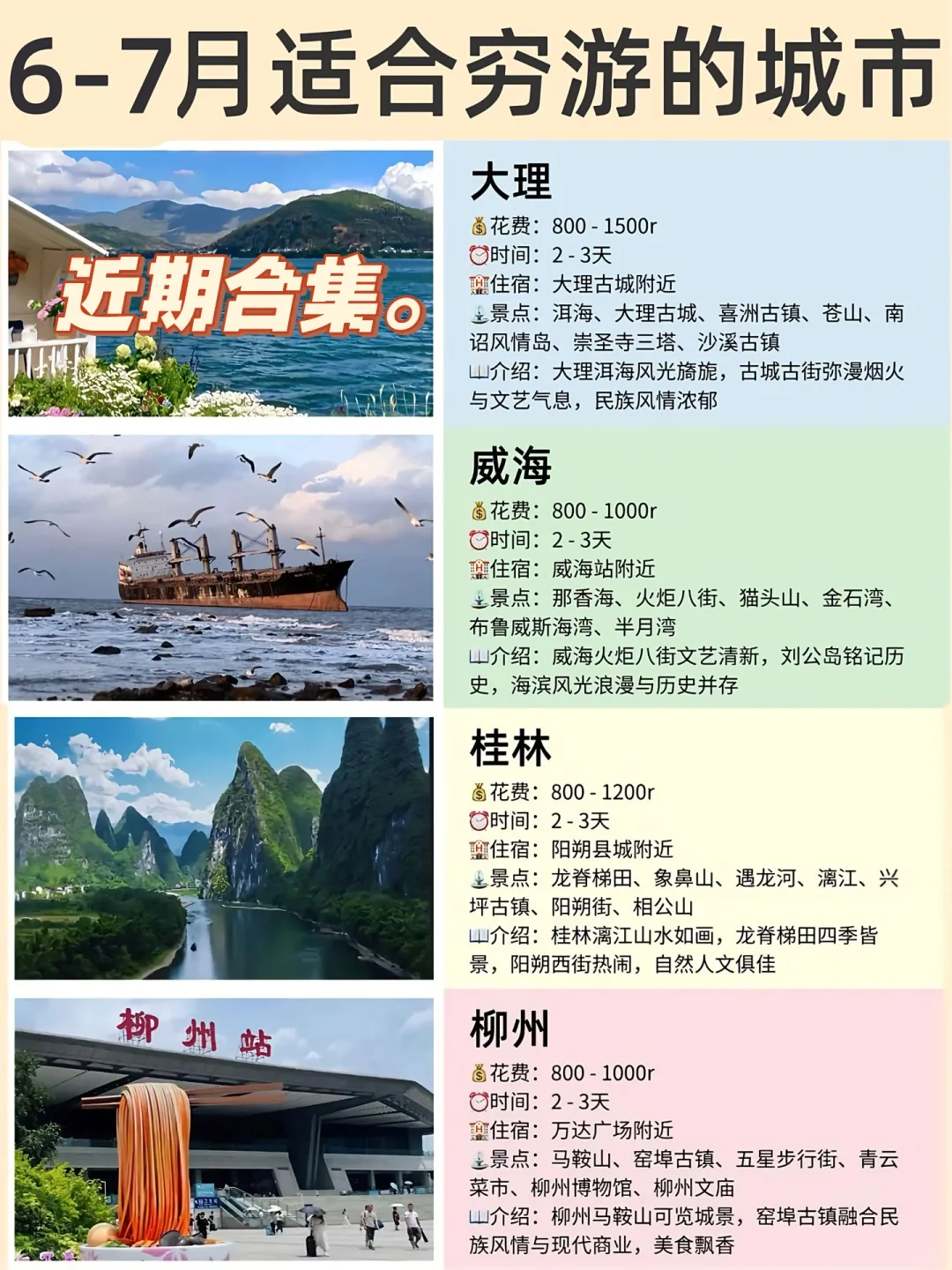 您现在的位置是:首页 > 国内旅游目的推荐 > 正文 国内旅游目的推荐 6月中下旬去哪里旅游比较好,限国内 admin2025年06月12日 10:52:39国内旅游目的推荐37 6月中下旬去哪里旅游比较好,限国内 救命!六月想和姐妹去旅游放松,到底选哪里啊😭\n目前纠结厦门、重庆、云南,但完全没经验!\n求姐妹们分享安利,国内好玩适合女生打卡的地方都可以!\n主打一个穷游~\n#去哪儿玩儿 #旅游推荐 #六月旅行 转载请说明来源于"旅荐网",部分内容转载自网络,如有侵权请联系qlwl@foxmail.com删除 本文地址:https://www.15386.cn/post/49666.html 上一篇 成都不只有大熊猫❗还有霍格沃茨魔法城堡‼ 下一篇 最适合穷游的城市 6-7月 相关文章 【文旅中国快报04.03】《旅游规划通则》4月1日起正式实施;《文化和旅游部艺术司关于第六届中国越剧艺术节申报事项的函》发布 旅游攻略丨九华山自驾两日游 抓住最后一波年味!深圳元宵游玩指南 旅游攻略 | 九华山自驾游推荐路线(两日游) 2026曹州牡丹园花期游玩全攻略来了,一篇就GO了! 九华山旅游攻略 | 寺庙挂单篇 般若舟祈福问道崆峒山旅游攻略户外爬山 攻略 国内小城,老外扎堆?莽山保姆级旅行指南,一文看懂景区玩法与行程规划 亳州清明节3天旅游攻略 阳朔—桂林旅游攻略,两日游 发表评论 取消回复 评论列表 这篇文章还没有收到评论,赶紧来抢沙发吧~