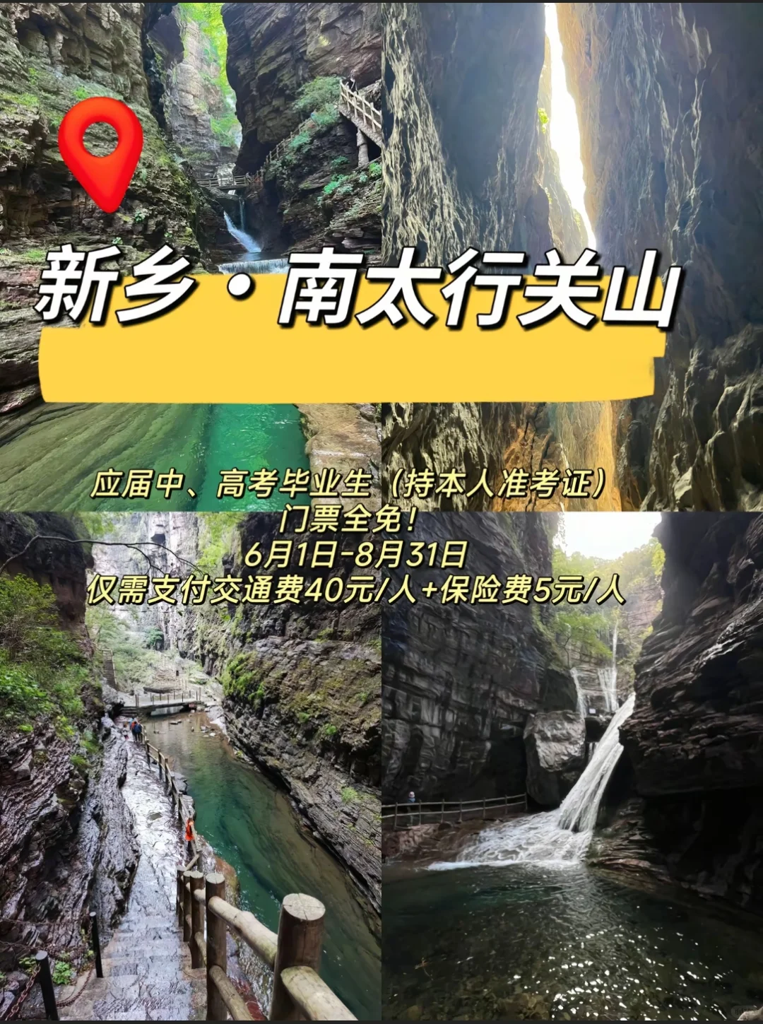 2025年高考结束啦~\n想好去哪里嗨了吗?\n👇河南这18个景区对高考生免费\n(新增至21个免费景区,详情见评论区)\n✅郑州\n🌟伏羲山\n6.10-8.31 应届高考生凭准考证免凤泉湖门票,云上牧场39/人,大峡谷30/人\n6.10-6.30 红石林凭高考准考证一票进两人\n🌟黄河文化公园\n6.9-8.31 应届高考生准考证/身份证免票\n🌟水墨香山旅游区\n6.1-8.31 应届高考生准考证免票\n \n✅新乡\n🌟宝泉旅游区(包括崖天下和大峡谷)\n6.10-7.31 应届中高考生免门票,仅需交通费\n🌟南太行(七大景区)\n6.1-8.31 应届中高考生凭准考证免门票\n🌟万仙山\n6.1-8.31 应届中高考生免门票,仅需景交保险\n \n✅洛阳\n🌟洛阳白云山\n6.6-8.31日 对全国学生群体免门票\n🌟龙潭大峡谷\n6.10-8.31 应届中高考生凭准考证/身份证免门票\n \n✅安阳\n🌟红旗渠\n6.9-8.31 应届高考生凭准考证/身份证免门票\n🌟马氏庄园\n6.9-8.31 应届高考生凭准考证/身份证免票\n \n✅许昌\n🌟曹丞相府\n6.9-8.31 应届高考生凭准考证免票,夜场演出半价\n \n✅商丘\n🌟商丘古城\n6.8-8.31 届高考生凭准考证/身份证 免国营景点门票\n🌟芒砀山旅游区\n6.10-9.1 届高考生凭准考证,免票游玩汉梁王陵景区、刘邦斩蛇处\n \n✅信阳\n🌟鸡公山主景区\n6.8-8.31 应届高考生凭准考证免门票\n \n✅南阳\n🌟五朵山\n6.9-8.31 应届中高考生凭准考证免门票\n \n✅驻马店\n🌟嵖岈山\n6.10-7.31 应届中高考生准考证/身份证免门票,需线上预约\n \n✅三门峡\n🌟函谷关景区\n6.9-8.31 应届高考生凭准考证免门票\n🌟娘娘山景区\n6.9-8.31 应届高考生凭准考证或身份证免门票\n \n2025河南高考优惠景区名单|准考证免门票的地方|高考准考证薅羊毛|高考准考证有什么优惠\n#2025高考#河南高考生免门票景区#高考准考证免票#高考准考证优惠攻略#河南多景区对全国中高考生免门票#宝泉崖天下#南太行#红旗渠#洛阳白云山#毕业旅行#高考结束去哪玩#河南旅游@生活薯 @校园薯 @走走薯
