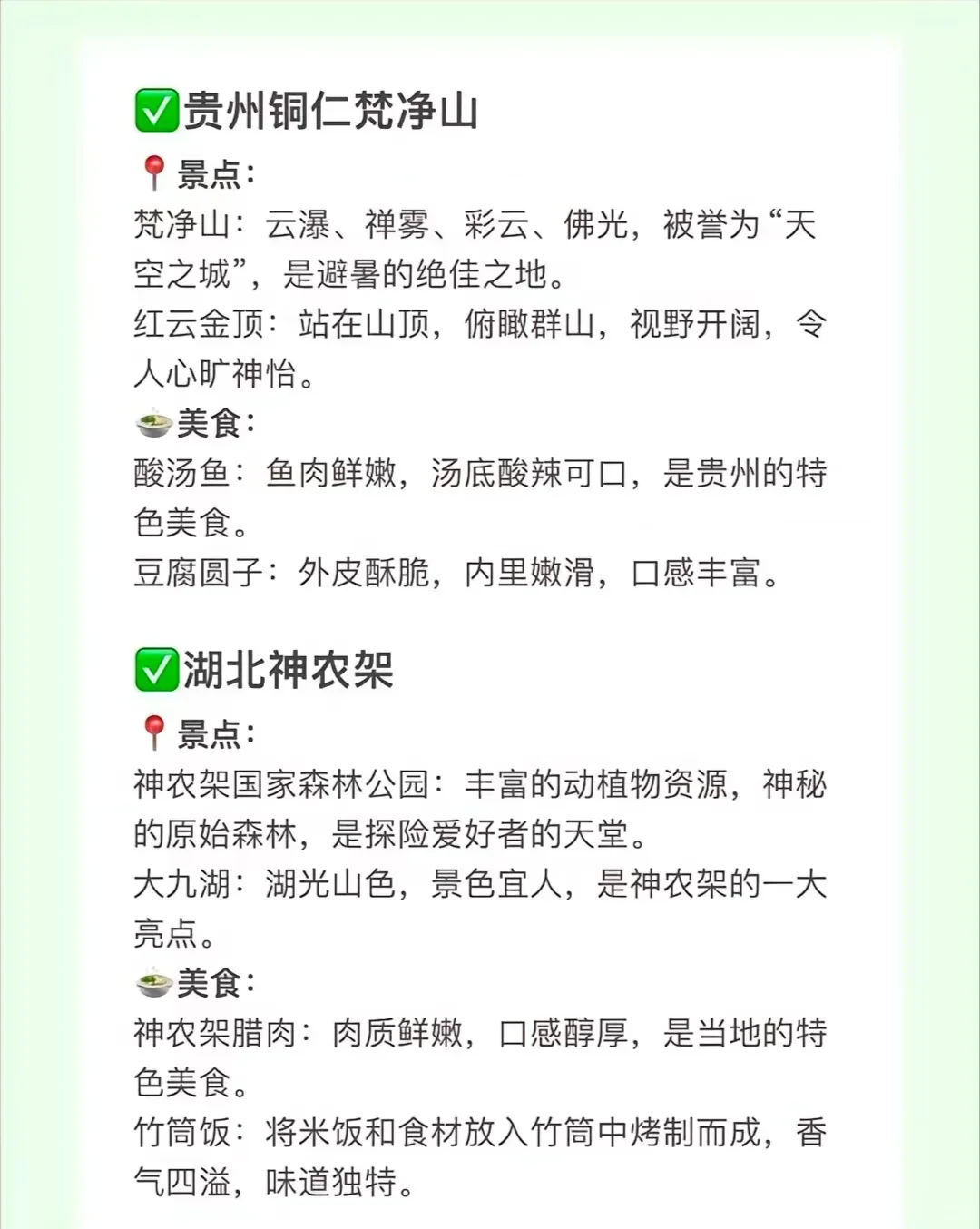 📍西安\n✅ 秦始皇兵马俑:世界第八大奇迹,站在俑坑前,仿佛能看到千年前的大秦帝国雄风。门票120\n✅ 西安城墙:租🚴环城墙俯瞰长安,门票54\n✅ 大唐不夜城:晚上灯火璀璨,有各种精彩的唐文化演出,仿佛穿越回了大唐盛世\n✅ 陕西历史博物馆:馆藏文物170多万件\n美食推荐🍽️chi:肉夹馍;羊肉泡馍;凉皮\n住宿建议🏠:钟鼓楼附近,交通便利美食多\n \n📍青岛\n✅ 栈桥:青岛标志性建筑,百年历史的海上长廊\n✅ 八大关:汇聚20国建筑风格的别墅,漫步其中仿佛置身欧洲小镇\n✅ 信号山公园:可俯瞰青岛老城全景,红瓦绿树、碧海蓝天尽收眼底\n✅ 崂山风景区:5A景区,可登山观云海\n✅ 青岛啤酒博物馆:4A景区,可了解青岛啤酒历史与酿造过程,品尝原浆啤酒和啤酒冰淇淋🍦\n美食推荐🍽️:台东夜市,劈柴院\n住宿建议🏠:市南区靠近栈桥、八大关等景点,出行方便\n \n📍丽江\n✅ 丽江古城:有四方街、木府、五凤楼等景点,夜晚可体验丽江的酒吧文化\n✅ 玉龙雪山:纳西族的神山,海拔4680\n✅ 泸沽湖:湖水清澈湛蓝,夏天开满了水性杨花。了解摩梭族的走婚文化\n✅ 束河古镇:保存完好的重要集镇,纳西庭院很好看\n✅ 白沙古镇:距离玉龙雪山最近的古镇,观雪山🏔️角度绝佳\n✅ 玉湖村:雪山脚下第一村,用石头搭砌的古村落。探险家洛克在这里居住27年\n美食推荐🍽️:米线;腊排骨菌子火锅;酸汤猪脚\n住宿建议🏠:丽江古城或束河古镇\n \n📍大理\n✅ 龙龛码头:天气允许,一定要去看一次日出\n✅ 崇圣寺:南诏国的皇家寺院,曾有9位皇帝再次出家\n✅ 潘西S湾:洱海边极致的浪漫\n✅ 廊桥:站在桥上看风景吹海风,很治愈\n✅ 喜洲古镇:文艺与古朴共存的白族小镇,麦田小火车很惬意\n✅ 理想邦:大理版的圣托里尼\n✅ 双廊古镇:找一位置看着洱海虚度时光\n✅ 文笔村:海边网红公路非常出片\n✅ 兴盛大桥:欧式复古风\n美食推荐🍽️:木桶鱼,石板烧,铜瓢牛肉火锅\n住宿推荐🏠:大理古城 龙龛码头 柴村 双廊(根据行程来定)\n#去过一次还想再去的城市 #一生中值得去旅游的地方 #毕业生旅行 #旅行好去出 #高考结束做什么 #考完就可以去看世界了 #学生党旅游 #用毕业旅游告别青春 #高考毕业旅游 #高考完就去看世界