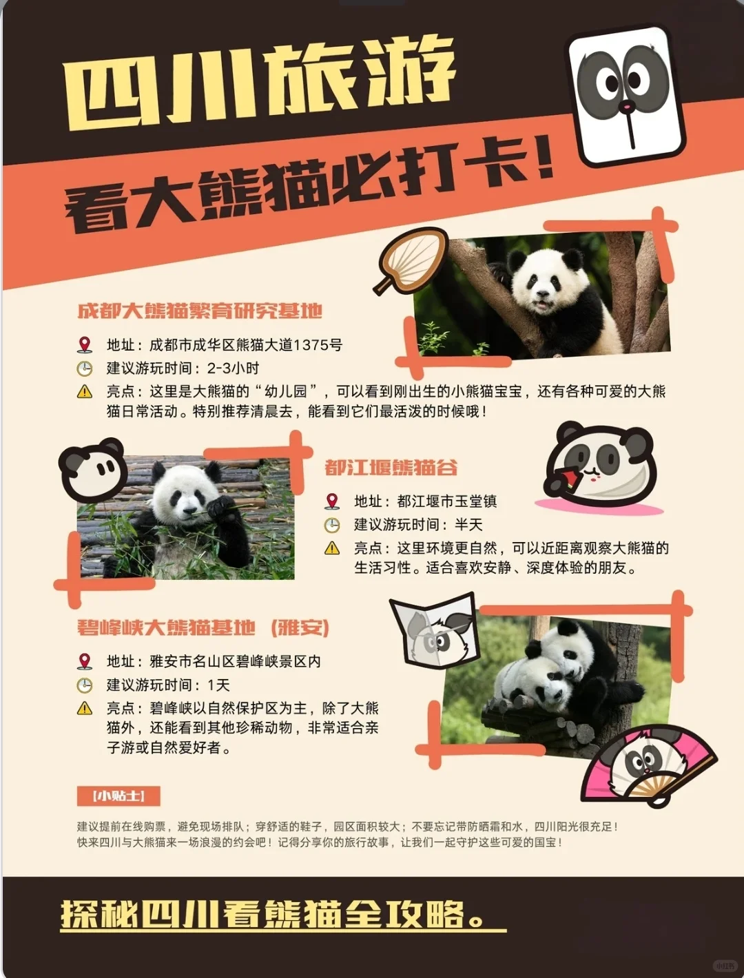 🏞️景点:大熊猫基地、宽窄巷子、锦里古街、武侯祠、杜甫草堂、都江堰