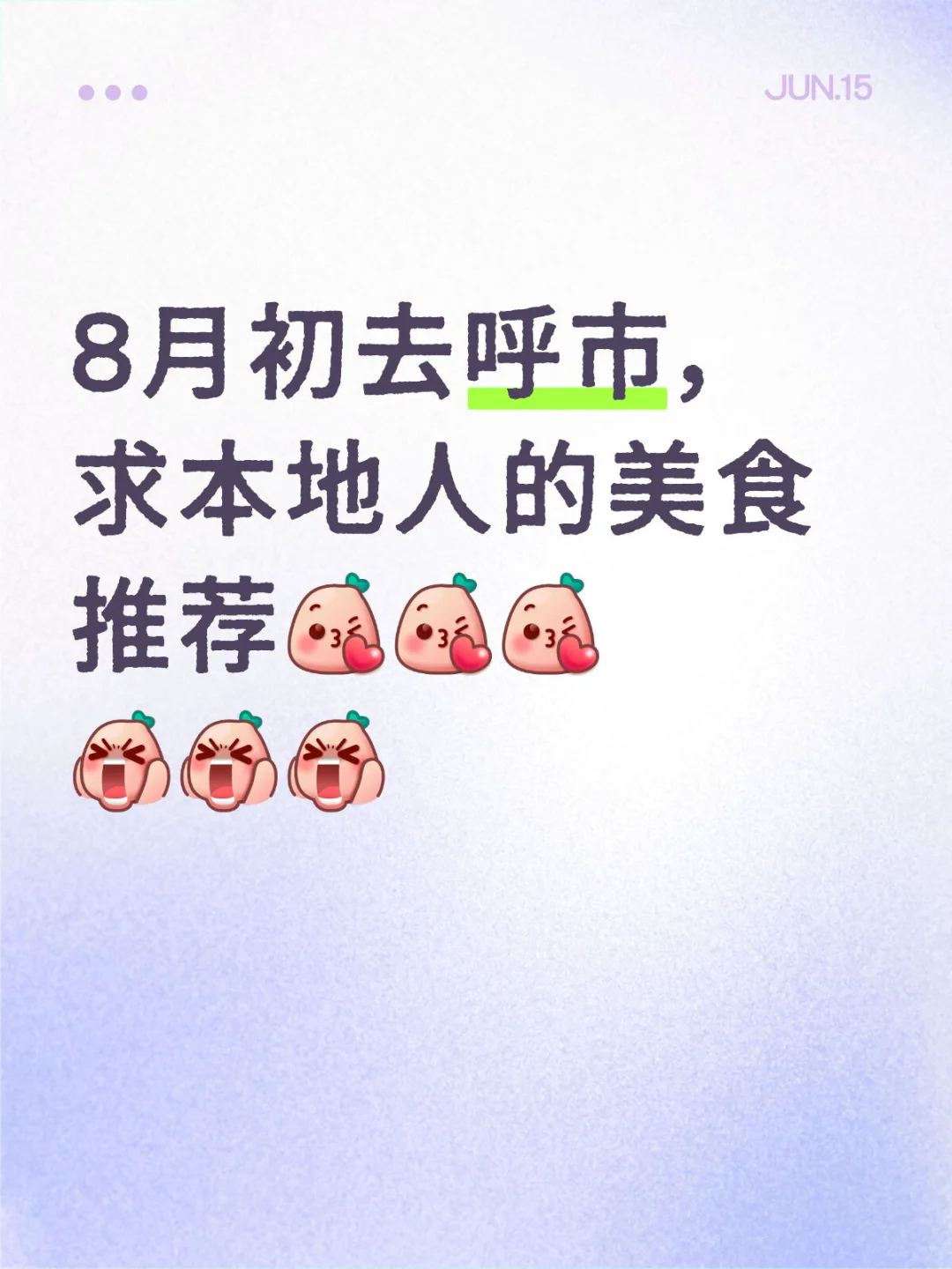 您现在的位置是:首页 > 国内旅游目的推荐 > 正文 国内旅游目的推荐 出发呼和浩特! admin2025年06月27日 02:42:00国内旅游目的推荐16 出发呼和浩特! 有什么美食推荐的!\n还打算去响沙湾,有什么需要注意的吗?\n谢谢!\n顺便蹲个搭子!12-14/6\n#旅游 #要去旅行啦 #内蒙古 #呼和浩特 #响沙湾 #搭子 #美食 #推荐 #本地人推荐 #景点打卡 转载请说明来源于"旅荐网",部分内容转载自网络,如有侵权请联系qlwl@foxmail.com删除 本文地址:https://www.15386.cn/post/52009.html 上一篇 旅游去哪玩 下一篇 跪求呼和浩特本地人老街坊的美食推荐 相关文章 亲子研学旅游指南⑤丨研学南京,快乐旅行,N种乡村玩法把春天过成诗 亲子研学旅游指南⑤丨研学南京,快乐旅行,N种乡村玩法把春天过成诗 错过等一年!五一秦皇岛最全游玩攻略,本地人私藏路线大公开 蒋坝螺蛳美食旅游季攻略来袭! 湖南湘西土家族苗族自治州旅行攻略实用TIPS 伊犁游玩攻略 北京旅游攻略:如何规划一次不留遗憾的京城深度体验 北京双飞全陪班26号 #京津冀旅游攻略 鹤岗旅游攻略必打卡景点 桂林市红色旅游参考资料系列十二︱ 灌阳县现场教学导游词-炮楼山 发表评论 取消回复 评论列表 这篇文章还没有收到评论,赶紧来抢沙发吧~