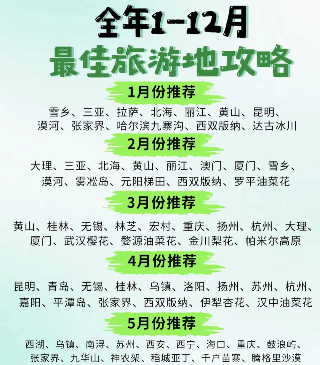 是谁说没钱就不能看世界?🙅♀️ 打工人/学生党预算告急也想浪?这30个宝藏城市请收好!美食、美景、人文全都有!\n收藏这篇,说走就走的旅行不再遥不可及!✈️\n.\n📍 西南片区\n1. 重庆: 3D魔幻山城,免费景点多到爆!\n2. 成都: 巴适得板!慢生活+熊猫+美食天堂!\n3. 昆明: “春城”不是白叫的!鲜花论斤卖!\n4. 贵阳: 避暑胜地!酸汤鱼丝娃娃香迷糊!\n5. 大理: 洱海的风,治愈一切!\n6. 丽江: 古城韵味浓。\n.\n📍 华东片区\n7. 南京: 六朝古都,底蕴深厚!免费景点超多!\n8. 苏州: 园林之城,小桥流水。\n9. 杭州: 西湖美景,免费!\n10. 绍兴: 鲁迅故乡,文化气息浓,黄酒飘香。\n11. 扬州: “早上皮包水”,早茶文化体验!\n.\n📍 华北 & 东北片区\n12. 西安: 碳水之都!历史迷天堂!\n13. 洛阳: 牡丹花城,龙门石窟震撼!\n14. 青岛: 红瓦绿树,碧海蓝天!啤酒海鲜!\n15. 天津: 万国建筑,相声好听,煎饼果子!\n16. 沈阳: 清文化发祥地,澡堂文化体验!\n17. 哈尔滨: 冰雪童话世界!\n18. 延吉: 中朝边境,美食爆炸!韩剧氛围!\n.\n📍 华南 & 华中片区\n19. 长沙: 网红城市!茶颜悦色+小龙虾!\n20. 武汉: 江湖气魄,过早文化!\n21. 南昌: 英雄城,性价比极高!\n22. 桂林: 山水甲天下!\n23. 柳州: 螺蛳粉爱好者的朝圣地!\n24. 潮州: 岭南文化,美食孤岛!牛肉丸!\n.\n📍 西北片区\n25. 兰州: 黄河穿城,牛肉面飘香!\n26. 西宁: 青藏门户,清真美食\n27. 敦煌: 大漠明珠,文化瑰宝!\n.\n📍 其他特色城市\n28. 泉州: 宋元中国的世界海洋商贸中心!古早味!\n29. 徐州: 两汉文化发源地,交通枢纽,烧烤出名!\n30. 蚌埠: “火车拉来的城市”,南北分界点,小龙虾!\n.\n💖 世界那么大,钱包那么小?不存在的!背上包,选个心仪的城市,出发吧!用最少的钱,看最美的风景,体验最真实的生活!\n#我的博物馆不白逛 #旅游万粉扶持计划 #穷游 #旅行攻略 #旅行清单 #国内旅游日常 #旅游攻略 #人文景点分享