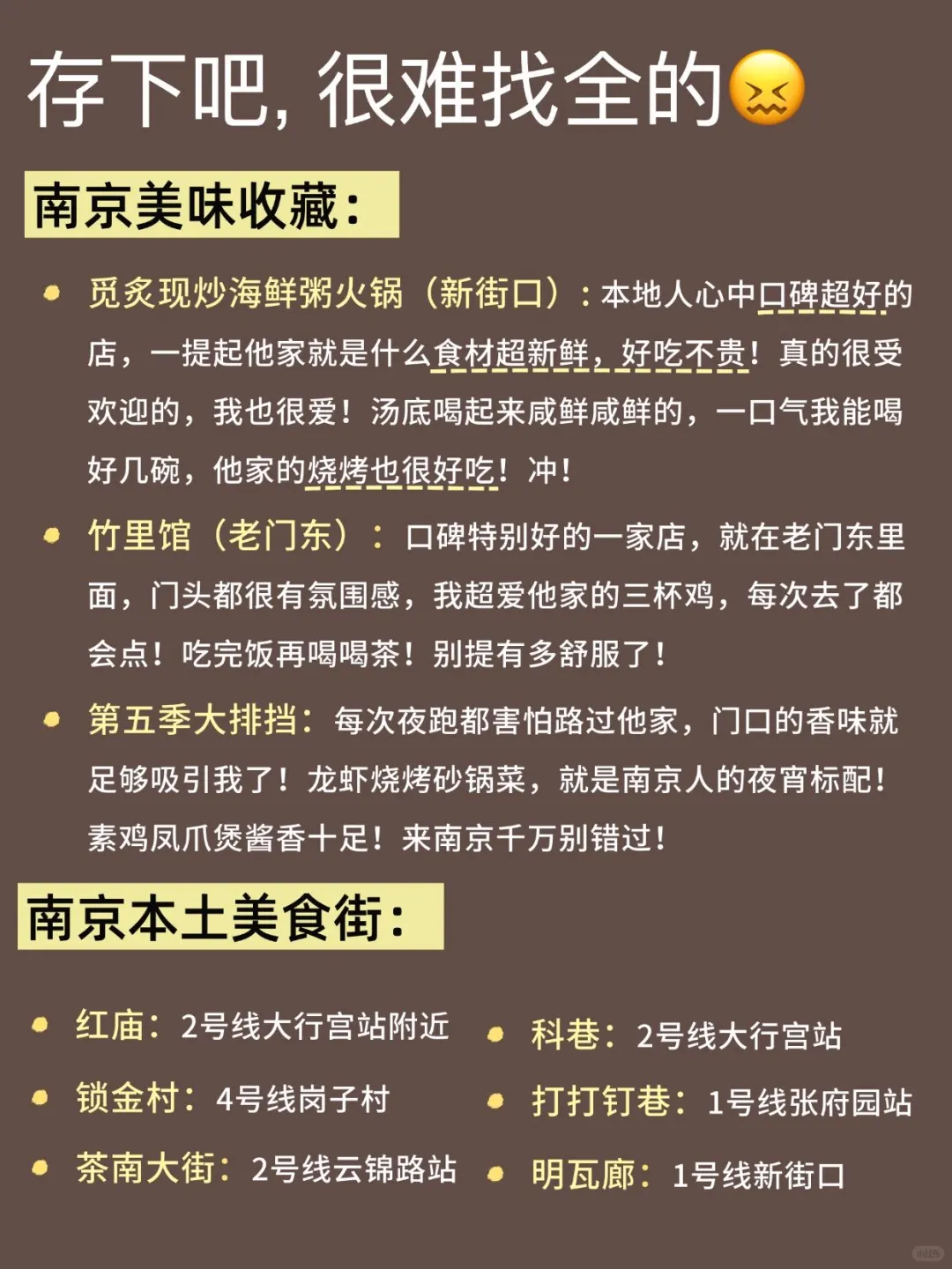 🍜 美食:蟹黄汤包、松鼠桂鱼、盐水鸭