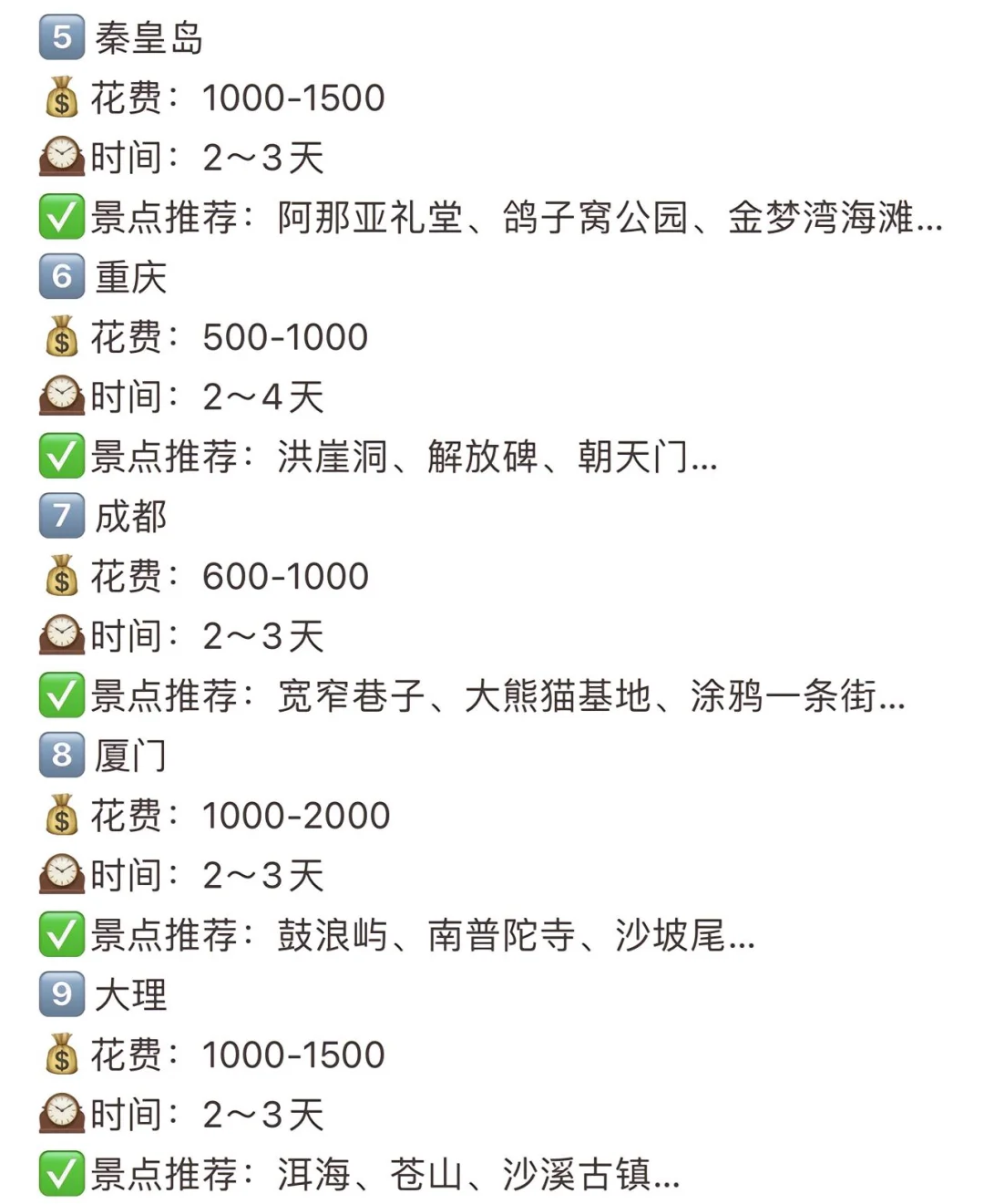 2023年zui省钱💰的旅游地来了,想出去玩的小伙伴,赶紧收藏码住‼️\n·\n🚇适合穷游的城市\n1⃣️山东淄博\n2⃣️云南芒市\n3⃣️福建泉州\n4⃣️贵州六盘水\n5⃣️重庆\n6⃣️成都\n7⃣️湖南长沙\n8⃣️延吉\n9⃣️广东汕头\n🔟安徽徽州\n·\n🗺️重庆三日游路线规划\nDay1:山城步道➡️解放碑➡️白象居➡️来福士➡️魁星楼➡️洪崖洞➡️千厮门大桥\nDay2:鹅岭二厂➡️李子坝轻轨站➡️长江索道➡️长江国际➡️筒子楼➡️弹子石老街➡️南滨路\nDay3:重庆动物园➡️涂鸦一条街➡️磁器口古镇➡️观音桥➡️北仓文创园➡️九街\n·\n重庆美食安利\n✅天棒老火锅:藏在居民楼的老火锅,开了很多年的老店了,手工做的冰汤圆才💰6r,好吃又解辣;\n✅秋孃孃火锅:很环境一般但味道👍绝了,地道传统老火锅。都是现做的手工菜。\n✅秋姐三样水煮蛙:重庆路边上的苍蝇馆子,蛙🐸都是现杀现做的,一定要早点去排队。