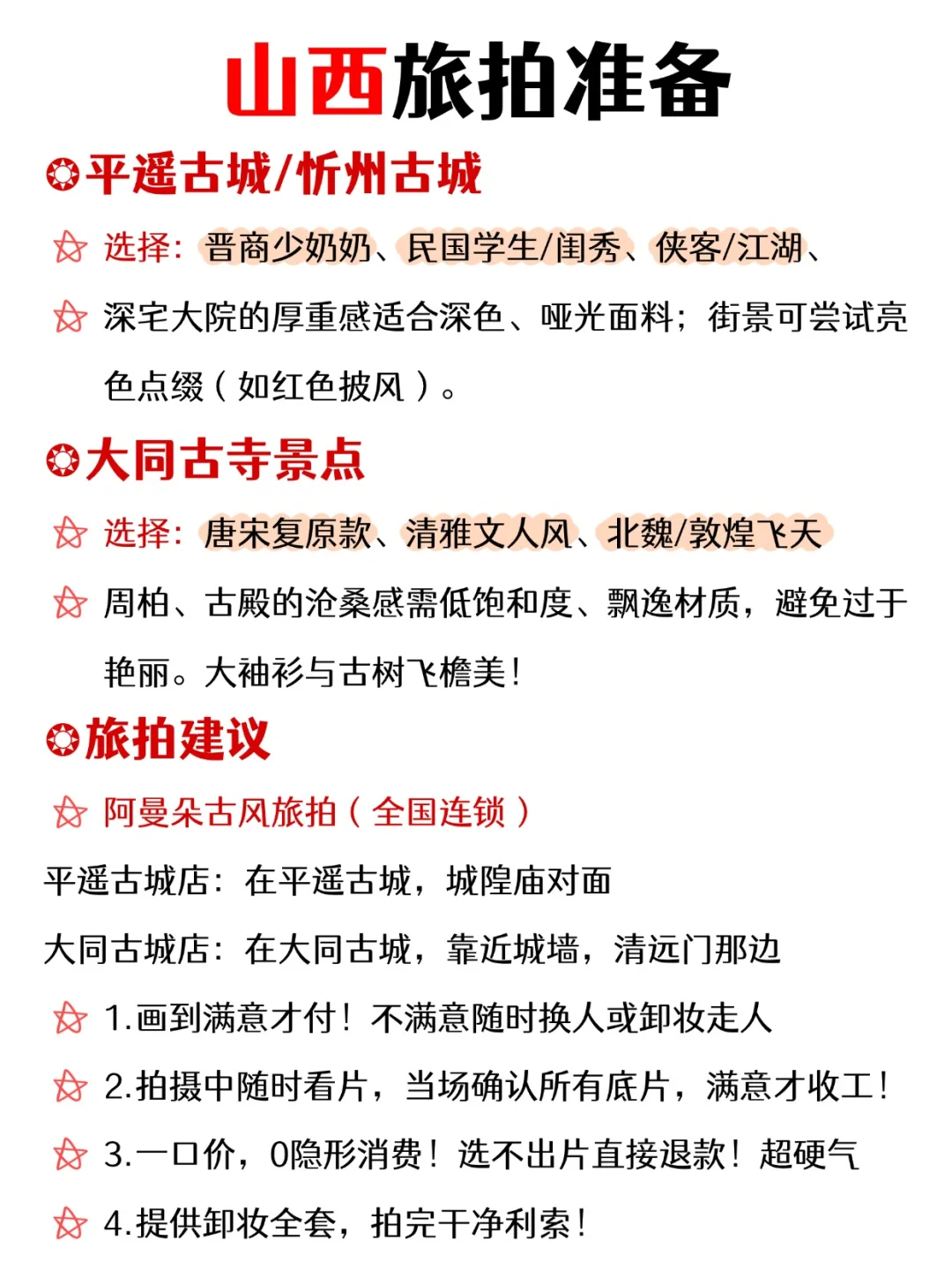 山西没有旅游淡季哦!😭不做攻略很容易踩坑的,所以给大家更新了山西的旅游攻略,大家要及时查看,避免踩坑!总结了云冈石窟、平遥古城、五台山、王家大院、壶口瀑布、应县木塔的✨新新游玩指南,很详细,大家可以收藏起来慢慢看~\n#山西旅游攻略 #山西自驾游路线攻略 #山西旅游必去的十大景点 #山西旅游景点分布图 #山西穿搭 #山西景点推荐 #山西旅游路线 #山西美食推荐 #暑假旅游推荐