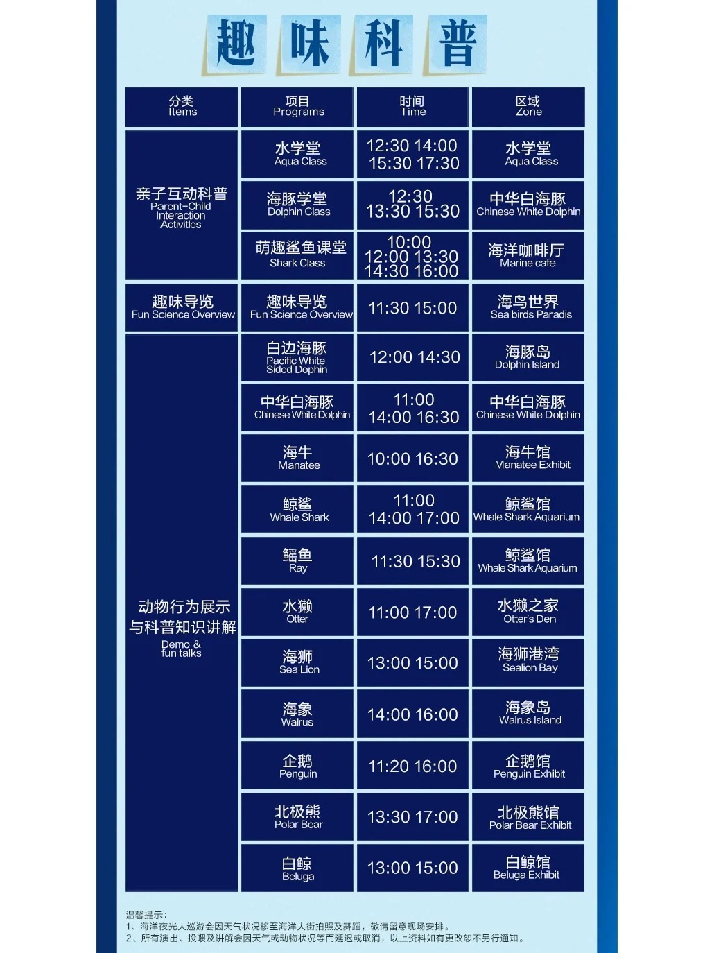长隆海洋王国营运时间9:30-20:00入住酒店的小伙伴们可以提早半小时入园~鲸鲨馆开馆时间10:00