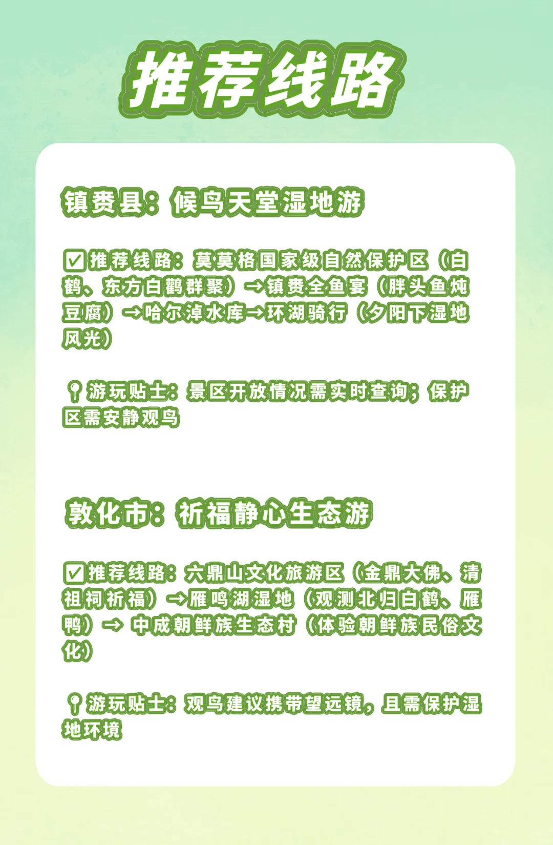 这次玩完西北蕞大的感受就是要懂得取舍,千万不要觉得来都来了,每个都要去玩,这样只会把自己弄得很累很累,我给你们说下我这次玩完回来的经验吧,有的景点是真没必要去,去了也白去,还不如在该去的景点多玩一下呢\n-\n下面这几个景点是我觉得没必要去的\n❌青海湖二郎剑景区:60 块门票就看了个人挤人!湖边全是大巴团,想拍张没人的照片比登天还难… 不如花 10 块香火费去尕日拉寺,能近距离亲水还能看日落,香多了!\n❌茶卡盐湖(阴雨天版):阴天去像逛臭水沟,盐洞还差点把我崴死… 赤脚踩进去像踩冰窖,出来脚底板全是伤口!听我的,先看天气预报,阴天直接跳过!\n❌石油小镇:就一堆废弃车和坦克,拍 10 分钟就没东西看了,门票还 50 块?纯纯人造景点坑钱的!\n❌嘉峪关:城墙全是翻新的,商业化到离谱!不如把时间省下来去敦煌夜市吃驴肉黄面!\n-\n强推这几个景点\n✅大柴旦翡翠湖:比茶卡美很多!湖水真的像绿宝石,下午 4 点去光线绝了,穿白裙子拍倒影直接封神!就是要注意防晒,我闺蜜晒脱皮了…\n✅鸣沙山月牙泉:一定要傍晚 6 点后进去!骑骆驼走在沙漠里看日落,晚上还能躺在沙丘上看星空(还有万人合唱,氛围超棒)。记得提前网购鞋套,景区卖的又贵又烂!\n✅张掖七彩丹霞:4 号观景台日落必冲!夕阳照在山上像打翻了调色盘,穿黑裙子拍对比感绝了。就是要早点去占位置,观光车排队能排 40 分钟…\n✅莫高窟 A 类票:多花 200 块看 8 个窟真的值得!壁画上的飞天像在动一样,讲解员说的故事比纪录片还带感。应急票别买,4 个窟看了个寂寞\n-\n小tips:\n1.4 人以上包车划算!当地司机知道好多隐藏机位还有人帮忙开车规划还是\n比较香的,不然自己很累\n2.别信什么红裙子!翡翠湖穿白的,丹霞穿黑的,鸣沙山穿牛仔套装,这样比较出片。另外一定要带厚外套\n3.七彩丹霞的热气球不要去!200块只能坐五分钟很不值!\n4.炕锅羊肉一定要吃大柴旦的,伊布拉家的超香!西宁的牦牛酸奶配蜂蜜绝了,敦煌夜市的杏皮水 5 块钱一杯必喝\n-\n最后说句大实话:青甘环线美是真美,但每天车程4小时真的累!建议别赶时间,8-9天足够玩透的\n#西北景点#青甘环线#西北景点攻略#青甘环线攻略