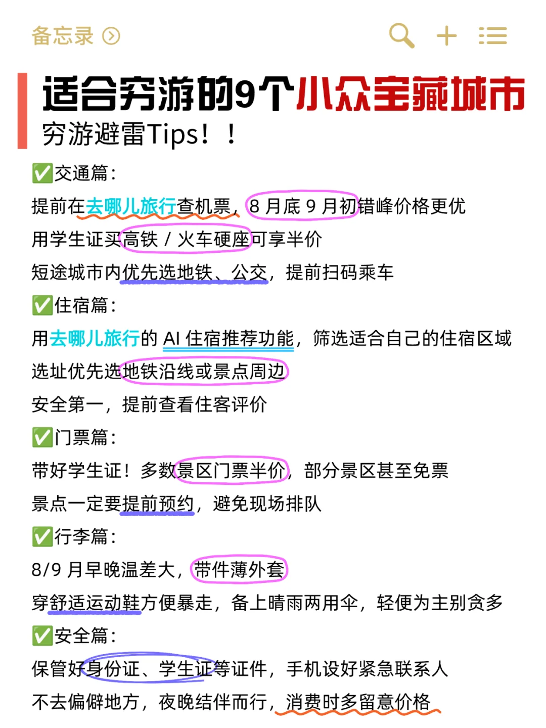 真正适合放空、独处的静谧之地,涵盖山海、古镇与自然秘境,每一处都能让你彻底脱离喧嚣,享受与自己对话的时光。\n \n1. 云南·巍山古城\n发呆理由:南诏古都的原生态茶馆文化,甲马印刷非遗体验,阳光在老街石板路上流淌的速度比城市慢三倍。\n \n2. 广西·明仕田园\n发呆理由:喀斯特峰林倒映稻田中,骑电动车漫游遇壮族村寨,夜晚银河垂落山巅。\n \n3. 青海·大柴旦翡翠湖\n发呆理由:盐湖群如散落的绿松石,空旷无人,光线变幻时湖水从蒂芙尼蓝渐变为薄荷绿,适合坐在盐岸看云影游走。\n \n4. 四川·冶勒湖\n发呆理由:凉山州高原秘境,原始森林环绕的湖泊,6月草甸碧绿,牦牛群漫步如《龙猫》场景。\n \n5. 福建·霞浦滩涂\n发呆理由:东壁村民宿露台俯瞰光影交织的滩涂,潮汐声里等一场橘子海日落。\n \n6. 西藏·南伊沟\n发呆理由:喜马拉雅山脚原始森林,松萝悬挂如绿纱,藏民转经声与溪流声构成天然白噪音。\n \n7. 内蒙古·呼伦湖\n发呆理由:草原尽头的\"海一样的湖\",17℃的清凉湖水与无边际的湿地芦苇荡,清晨薄雾笼罩时如北欧峡湾,傍晚可独享鸥鸟归巢的震撼。\n \n8. 安徽·碧山村\n发呆理由:徽州古村的稻田环绕碧山书局,老爷爷书店的旧书堆里可淘到80年代绝版诗集。\n \n9. 云南·沙溪古镇\n发呆理由:茶马古道上的千年小镇,周五集市淘手工银器,古戏台下午夜星空如梵高画作。\n \n📌 发呆哲学指南\n时间法则:自然类景点选清晨/黄昏,古镇避开节假日。\n心灵准备:带空白笔记本,记录风划过树叶的弧度或偶遇的乡野对话。\n安全贴士:高原地区备氧气瓶,海边注意潮汐时间;呼伦湖需防风防晒装备。\n“真正的发呆,是让风景穿过身体而非镜头。”