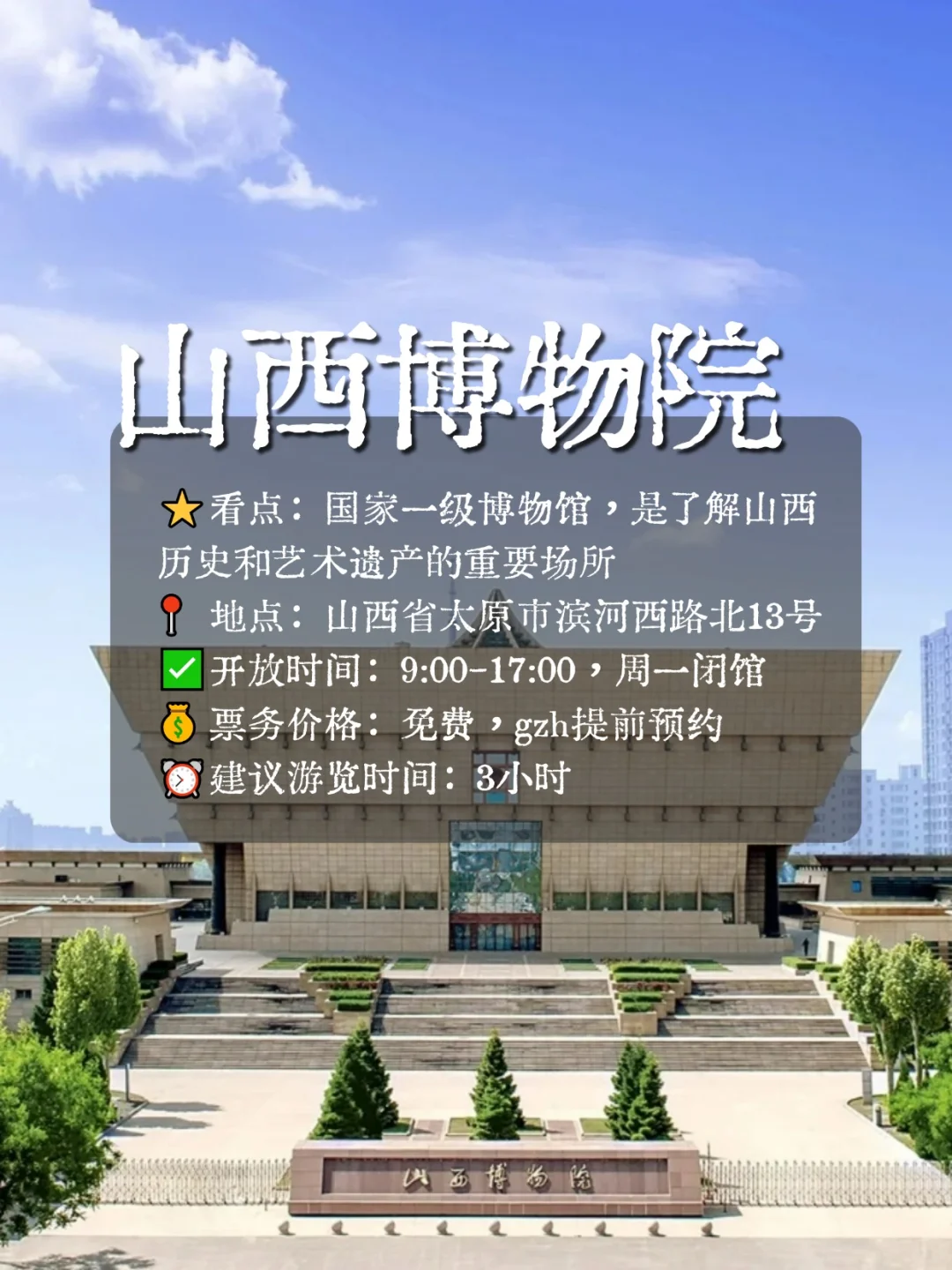 🕖开放时间:8:30-18:00(17:00停止入园),周一闭馆(法定节假日除外)