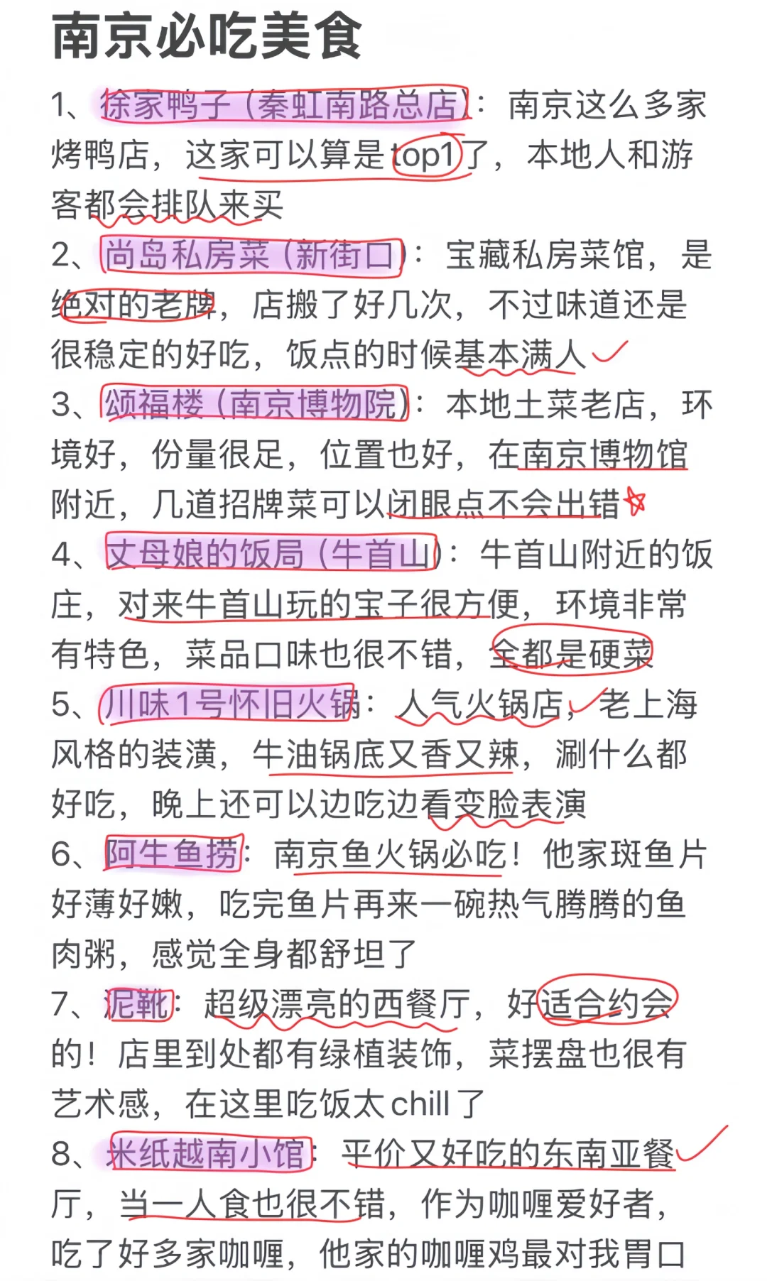#南京夫子庙[poi_v2]# 作为严谨细致的 J 人,旅行攻略必须安排得明明白白!耗时整整三天精心打磨这份南京出行计划,还从当地好友那里挖到不少宝藏美食,狠狠期待这次完美之旅啦!\n.\n💖来南京可以做的事\n1.一起去百家湖坐摩天轮🎡\n2.一起夜游秦淮河🏞\n3.一起去红山动物园看杜杜微\n4.一起爬紫金山看日出🌅\n5.一起去鱼嘴看日落\n6.一起去梧桐大道🍁\n7.一起去玻璃栈道看大桥\n8.一起中山码头坐轮渡🚢\n9. 一起去德基艺术博物馆看壮观的金陵图\n.\n🌦天气状况\n7月:温度30-38度 天气:多云为主\n8月:温度30-38度 天气:晴天、多云较多\n👕穿搭:防晒衣,短袖、防晒帽,防晒口罩,冰袖~\n.\n🥘本地人推荐的美食\n✅李百蟹·江南蟹黄面(夫子庙店)\n✅金陵家宴·金陵春·南京菜(夫子庙店)\n✅晚园·江南火锅·秦淮河景餐厅\n✅少伯茶苑·秦淮河景茶馆\n#南京#南京旅游#南京旅游攻略#南京旅行#南京旅行攻略#南京探店#周末去哪儿#南京美食#假期去哪玩#南京吃喝玩乐#南京酒店#夫子庙#秦淮河#南京新街口#南京德基#玄武湖#鸡鸣寺#南京菜 #暑假旅游