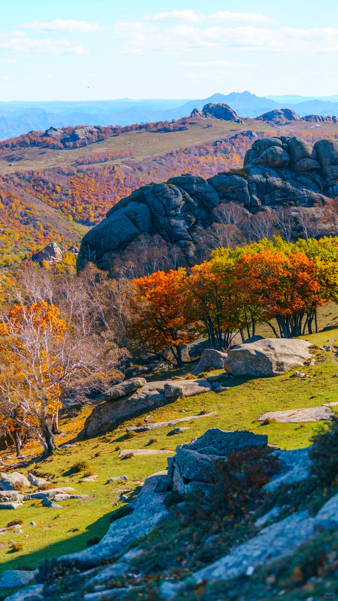 作为克什克腾世界地质公园的 “王牌”,这里的花岗岩石林真的会颠覆对 “石头” 的认知 —— 不是单调的岩石堆,是像被上帝雕刻过的艺术品,配上草原蓝天,随手拍都是电影感!\n🚗 交通攻略(自驾党必看)\n乌兰布统过来,走达达线抵达阿斯哈图石林,景区必须买 50 元观光车(必购!),因为各个景点距离远,观光车会按 “月亮城堡→七仙女→鲲鹏落草原→拴马桩” 的路线停,全程玩下来 2-3h 刚好。后穿越热阿线,会经过黄岗梁林海,金黄的松树配草原,随手拍都是桌面级风景~抵达热水塘入住!\n🌟 阿斯哈图石林必打卡景点(附拍照机位)\n月亮城堡景区\n标志性的 “月亮门” 一定要拍!下午 3 点左右阳光斜照,能拍出石拱门的光影层次感,穿浅色长裙站在栈道上,仿佛站在科幻电影里的外星地貌🌌\nTips:别只拍正面!绕到侧面拍 “石墙迷宫”,能拍出被石林环绕的纵深感。\n七仙女景区\n七根石柱并排站超灵动!秋季来的时候,石柱背后的草原变成金黄色,穿焦糖色或白色衣服超出片~\n推荐用长焦镜头拍局部,把石柱和天空的比例调成 1:2,云层多的时候更有氛围感!\n鲲鹏落草原景区\n这个景点一定要等日出或日落!我蹲了日出,当阳光把巨型 “鲲鹏石” 染成金红色,真的会忍不住哇出声~\n航拍党必冲!从空中看,石林像趴在草原上的巨兽,和远处的风车同框,辽阔感直接拉满!\n🧥 穿搭 & 装备建议\n穿搭:景区海拔 1700m,昼夜温差能差 15℃!我 8 月底去的,中午穿短袖,早晚套冲锋衣刚好,建议穿浅色系 + 大地色,和石林、草原更搭。\n装备:防晒霜(紫外线超强)、墨镜、帽子、充电宝(景区信号差,别指望借电)、长焦相机(拍石林细节绝了),如果想拍星空,记得带三脚架!\n🏨乌兰布统酒店推荐:索性酒店(乌兰布统景区店)#乌兰布统秋季摄影 #乌兰布统游 #乌兰布统 #达达线 #热阿线 #阿斯哈图石林 #黄岗梁