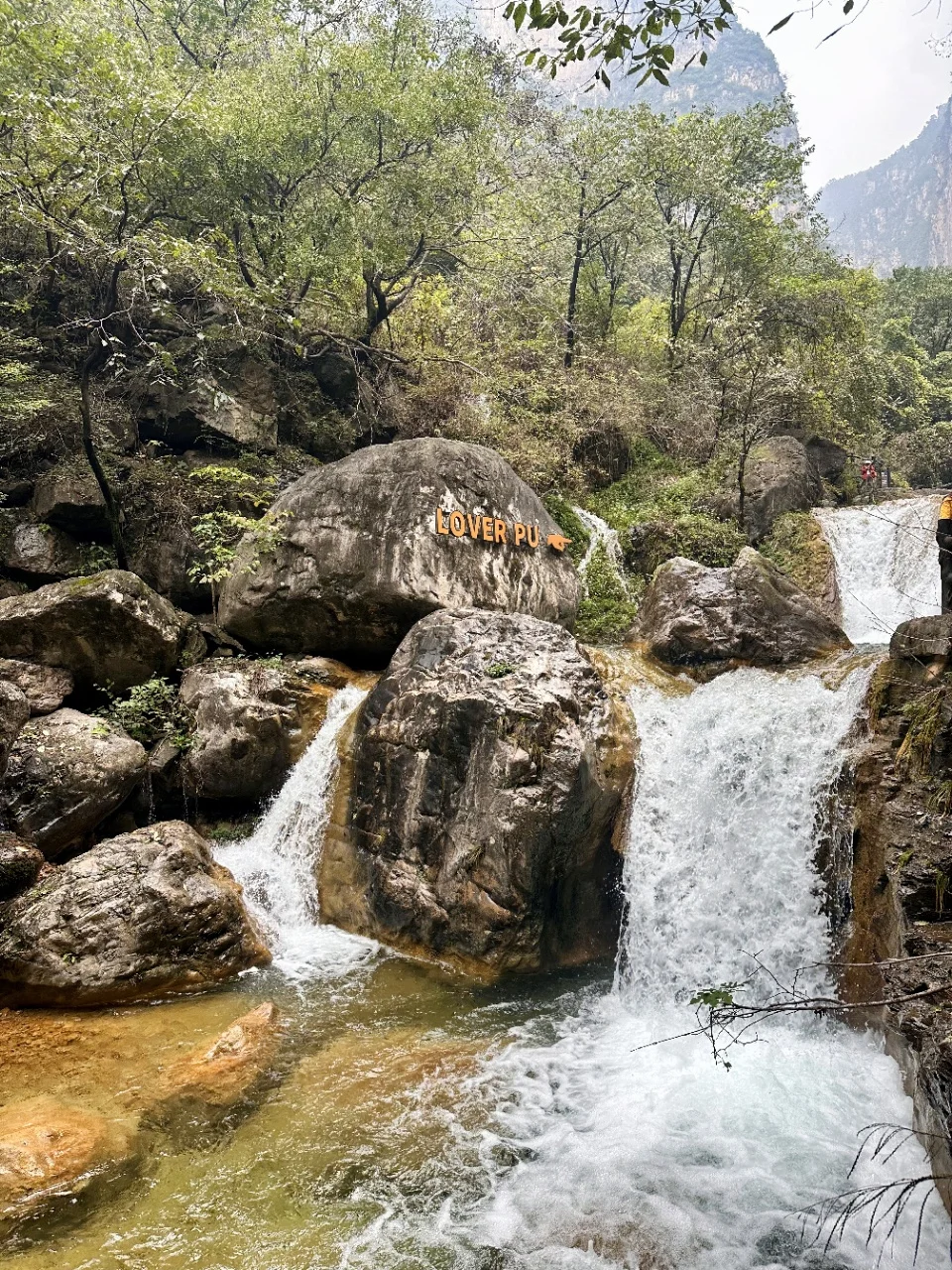路线是从山顶到山脚,从山顶欣赏红叶满山,到山谷间顺着溪流瀑布下山,全程都风景很美,还可以近距离触摸溪水