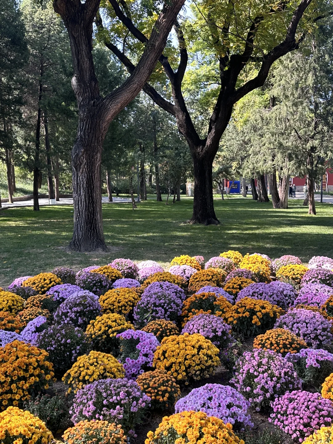 特色:金色树干+红叶交错