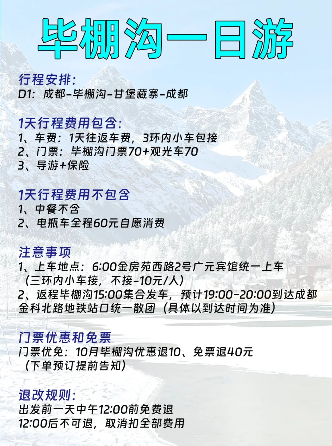 - 每天开团,1人即成团(淡季满团不超12人)