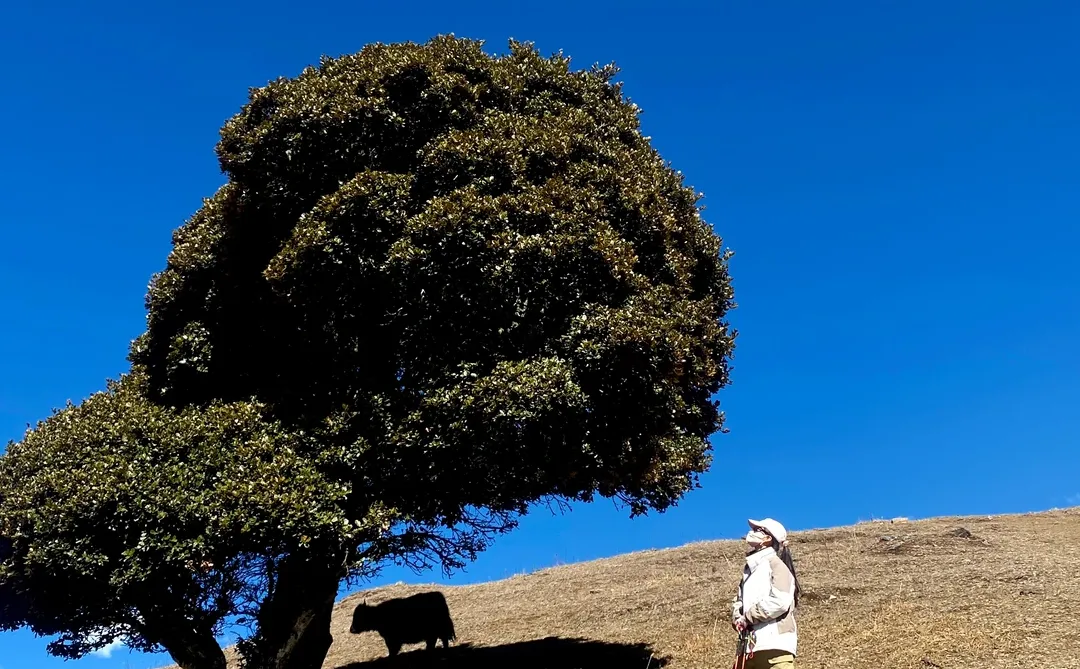 上山途中不少人在线挥手想上车