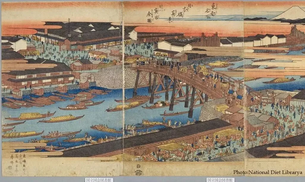 ▲旧时的鱼河岸市场位于日本桥(图片来自网络书)