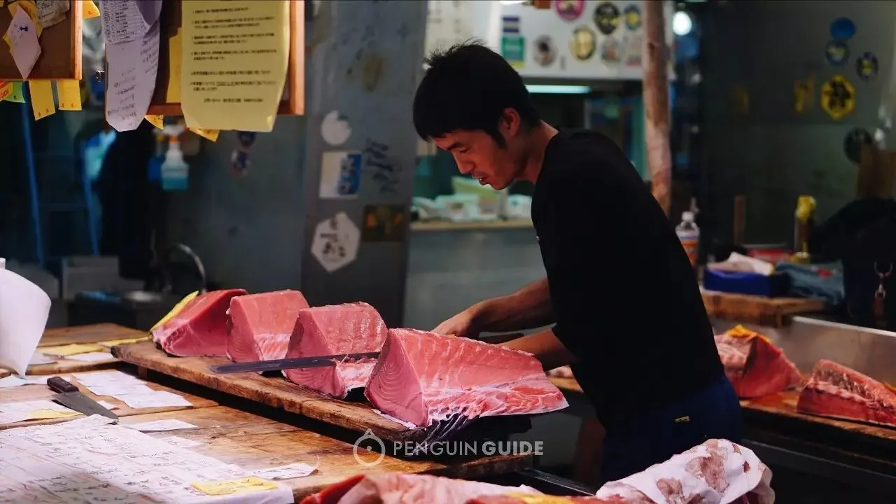 切分好的每块鱼都会清晰地标注产地,大多还会标上渔法(捕获方法),足见日本人对金枪鱼品质的苛求。在东京,无论是寿司名店,还是沿街小铺,所用的金枪鱼绝大多数来自于此,在这背后,蕴含了鱼商的专业本领和员工的职业操守。