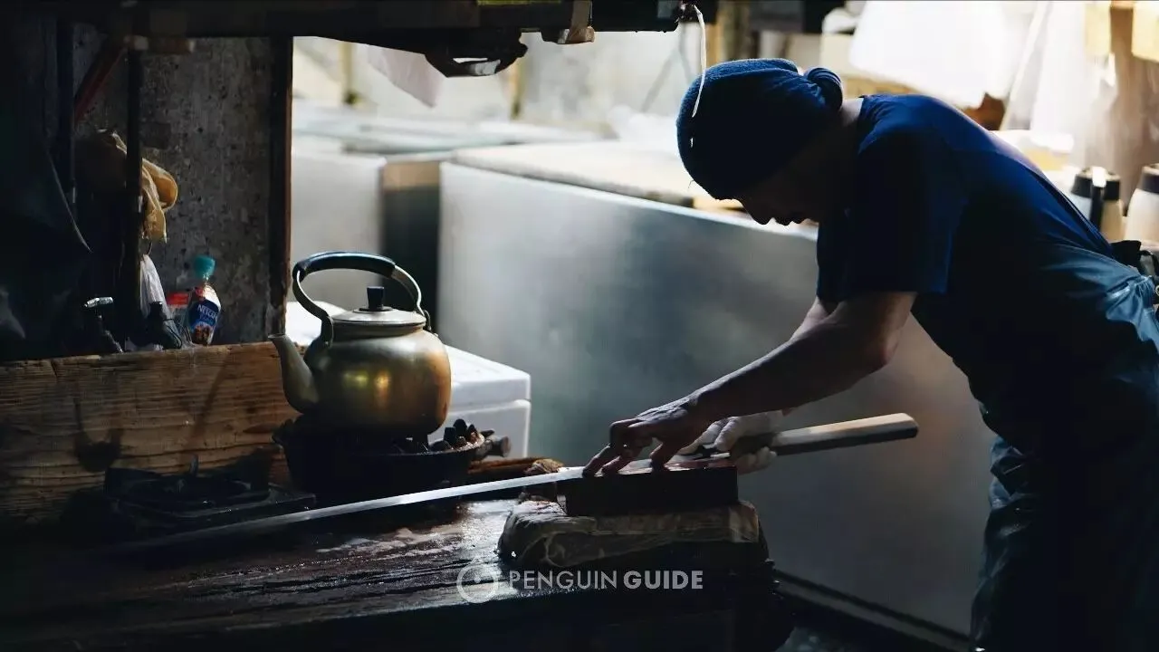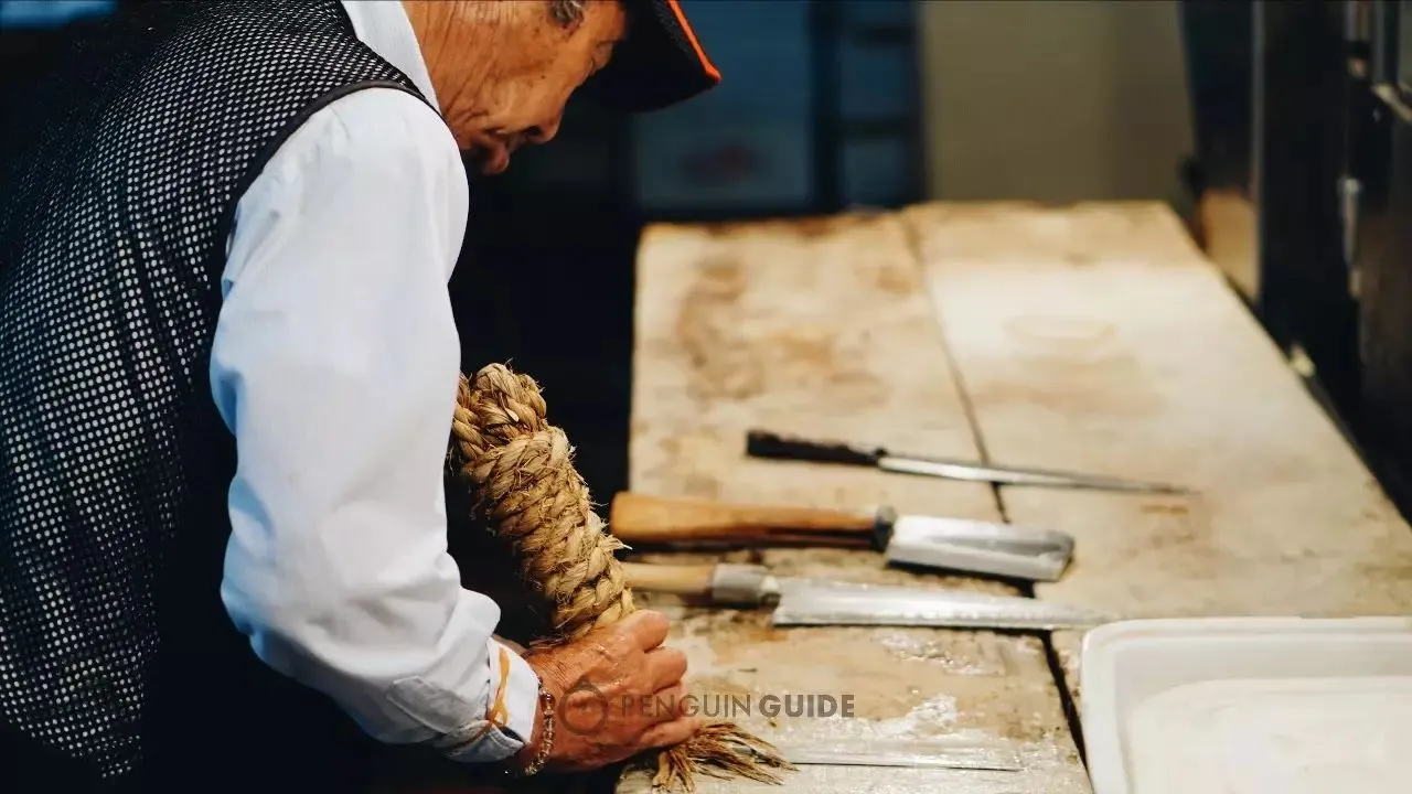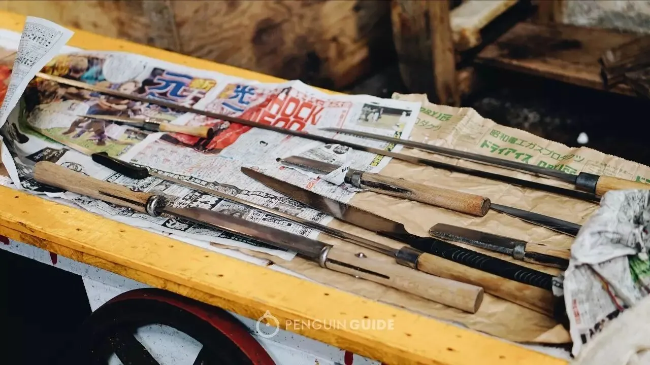 对中盘商来说,切分金枪鱼的刀非常重要,刀具有一整套,多为名家作品,每次使用后都要悉心保养。当你看到一个上了年纪,或许在筑地工作了几十年的男人,在收市后仔细保养金枪鱼刀,那种敬佩感大概会油然而生吧。