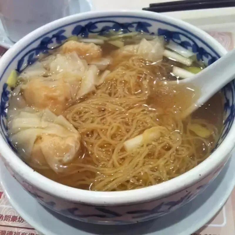 云吞全部是完整的大个鲜虾所做;汤面要用猪骨、大地鱼干、虾皮熬至而成;面条以鸭蛋及高筋面粉做成:这才正宗!