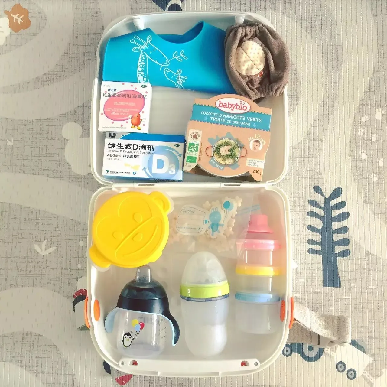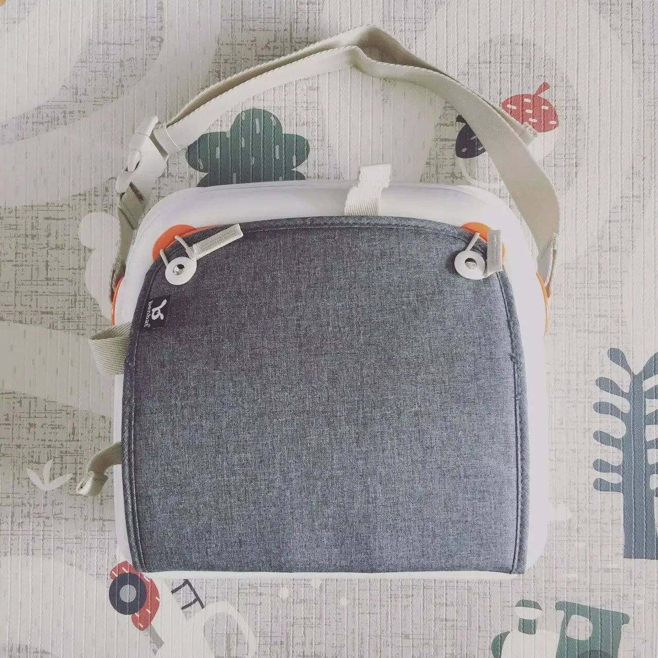 这款便携式餐椅是一个垫高式简易餐椅,也同时是一个收纳箱。我们是一直把它放在车子的后备箱里,如果去的餐厅正好没有宝宝椅,这款餐椅就能解燃眉之急,所有的妈妈肯定都深有体会,没有餐椅,大人和宝宝都是完全没法安静吃饭的。这次旅行我也带了这款餐椅,因为它同时也是收纳箱,我觉得非常方便,由于婴儿车是随身携带上飞机的,所以这款餐椅也是一直随时挂在婴儿车上的,完全不占地方。餐椅里我们放了几乎所有的辅食和餐具,小身材大容量。
