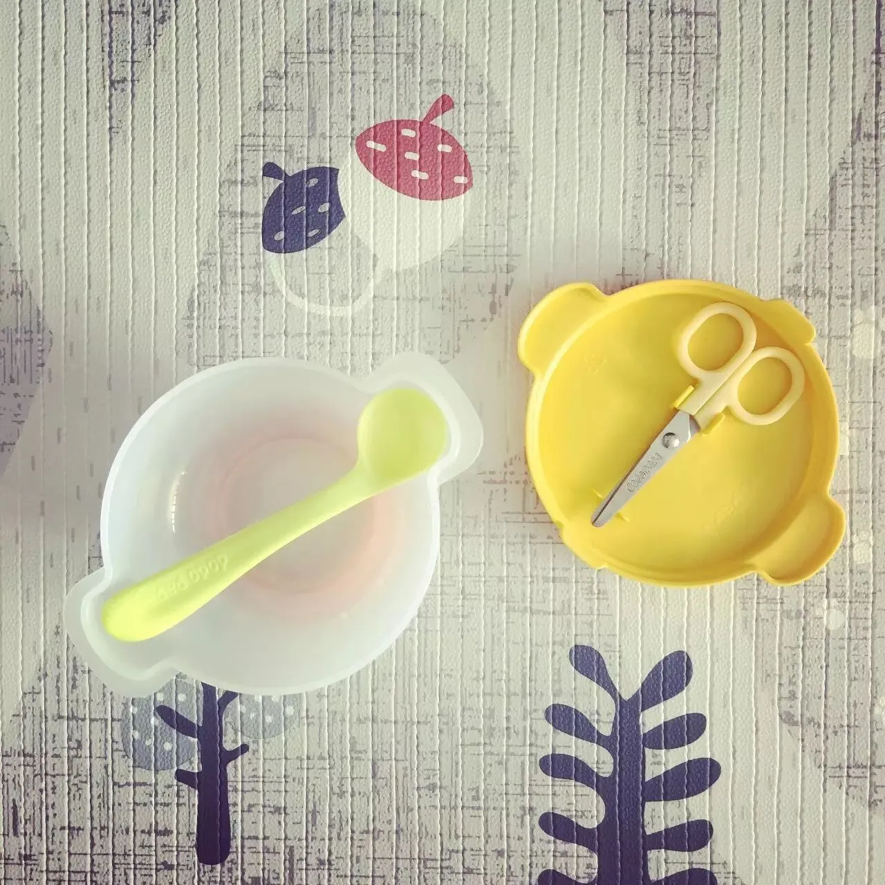 这款餐碗的材质是不含有双酚A的耐高温食品级PP原料,安全环保的材质永远是妈妈们的首选。但推荐这款餐碗最为重要的原因是它内配有一个勺子和一把辅食剪,许多外出用的餐碗都会配有勺子或者叉子,但是配辅食剪的很少,外出再多带一把辅食剪,又非常容易忘记,至少我这种连围兜都经常忘记的妈妈,完全不会记得有辅食剪的存在。但是剪刀对于小宝宝吃饭来说,真的很有用很有必要。
