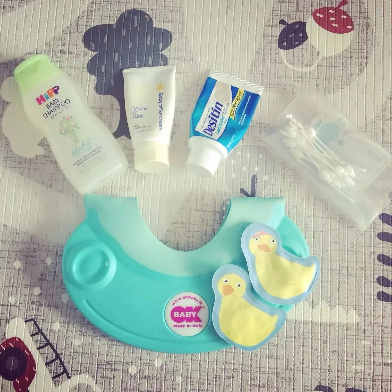 1. 沐浴露和洗发水——推荐携带小瓶的沐浴洗发二合一的产品,主要还是方便。我带的是HIPP无泪配方的洗发水,看中瓶子比较小,HIPP家有二合一的产品比较推荐,但家用的话还是推荐Mama&Kids,更加温和。