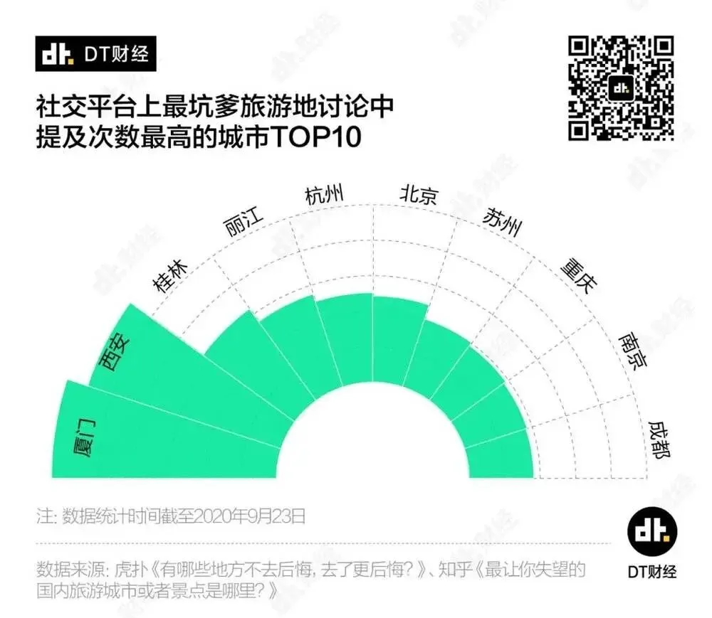 其中,厦门、西安和桂林,荣膺前三名,遭到了最多的吐槽。4~10名分别是丽江、杭州、北京、苏州、重庆、南京和成都。