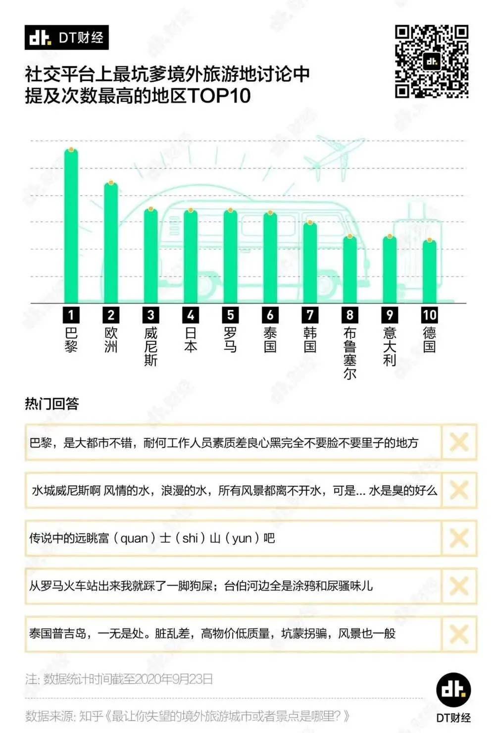 我们还统计出一份最令人失望的境外旅游地榜单。时尚之都巴黎、富有艺术文化气息的欧洲、水城威尼斯都登上了TOP3。意外的是,连服务出了名的好的日本等国也上榜了。