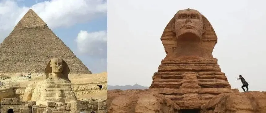 (左:埃及狮身人面像,右:石家庄狮身人面像,图片来自网络)