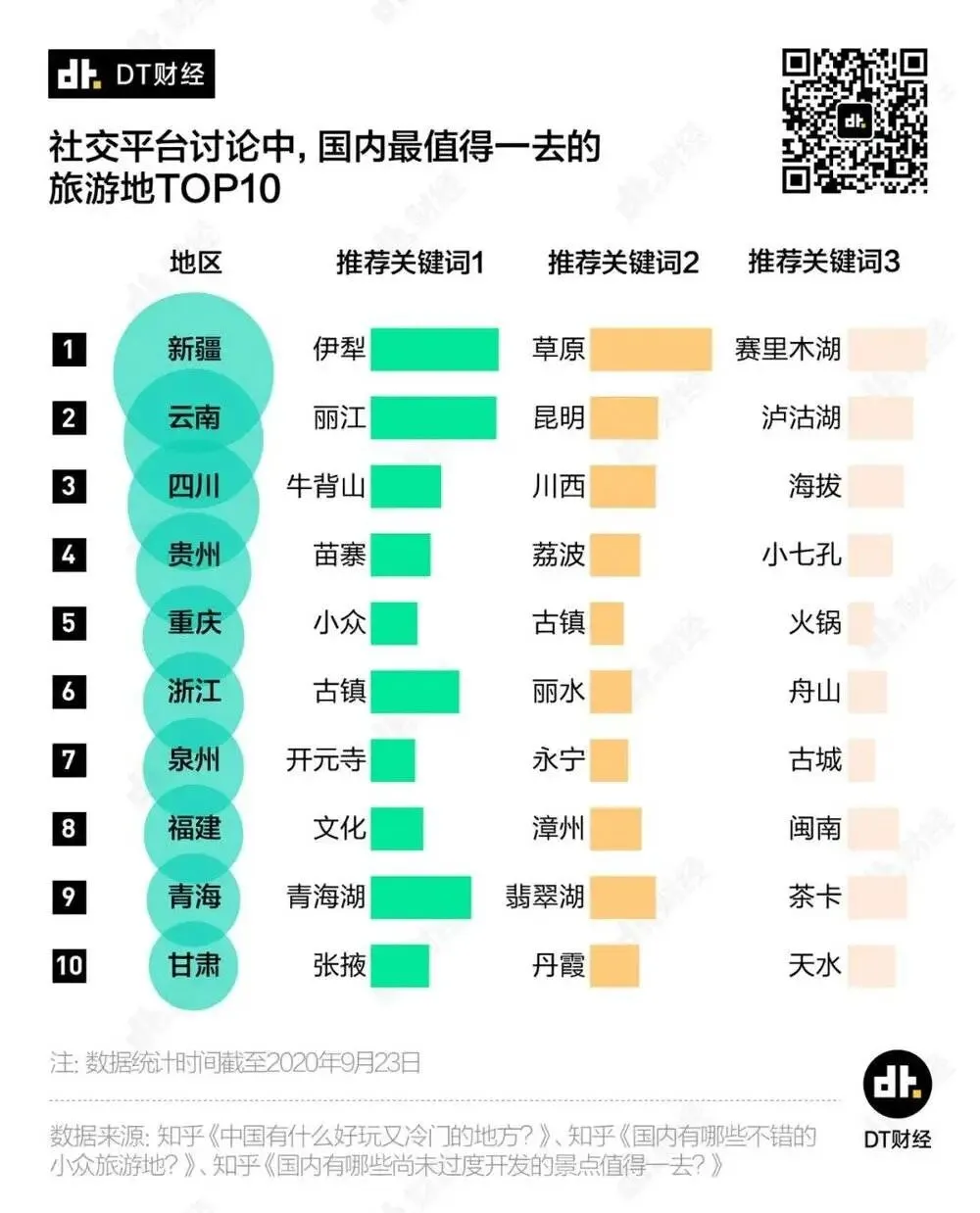 可以看到,新疆、云南、四川霸居前三,成为大家心目中最值得一去的旅游地。