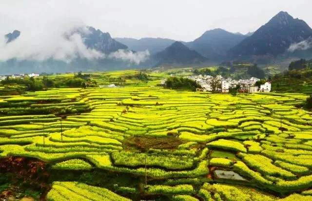 江西,油菜花大省。每年都会吸引大量的游客前来观赏油菜花。走进婺源江岭和篁岭,处处是粉红的桃花、洁白的梨花与层层金黄的梯田油菜花、白墙黛瓦的民居相辉映,构成一幅幅唯美的天然画卷。