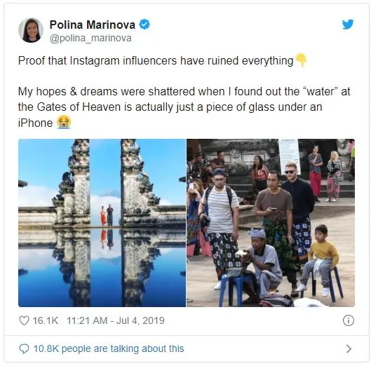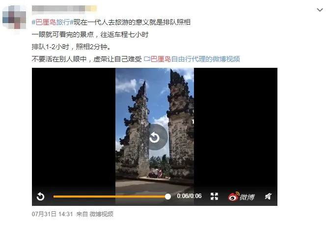 我们既是景点障眼法的受害者,也是障眼法背后的始作俑者。 越来越多簇拥而成的人造网红景点,正在紧跟着我们ins风网红滤镜的打卡风潮。 巴厘岛再也不是我们心目中的巴厘岛了,除了最近被吐槽的“天空之门”不再,还有网红秋千鸟巢。 看到ins旅游博主露着香肩美背,坐着鸟巢般的秋千迎风摇曳在原始热带雨林里,太美好了。