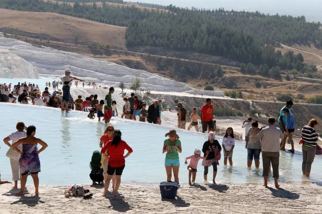 没想到现实非常骨感,什么白色天然钙化物景观,游客一扎堆拍照一看:这不就是巨型指压板吗,有温泉还不是一样“全民下饺子”?