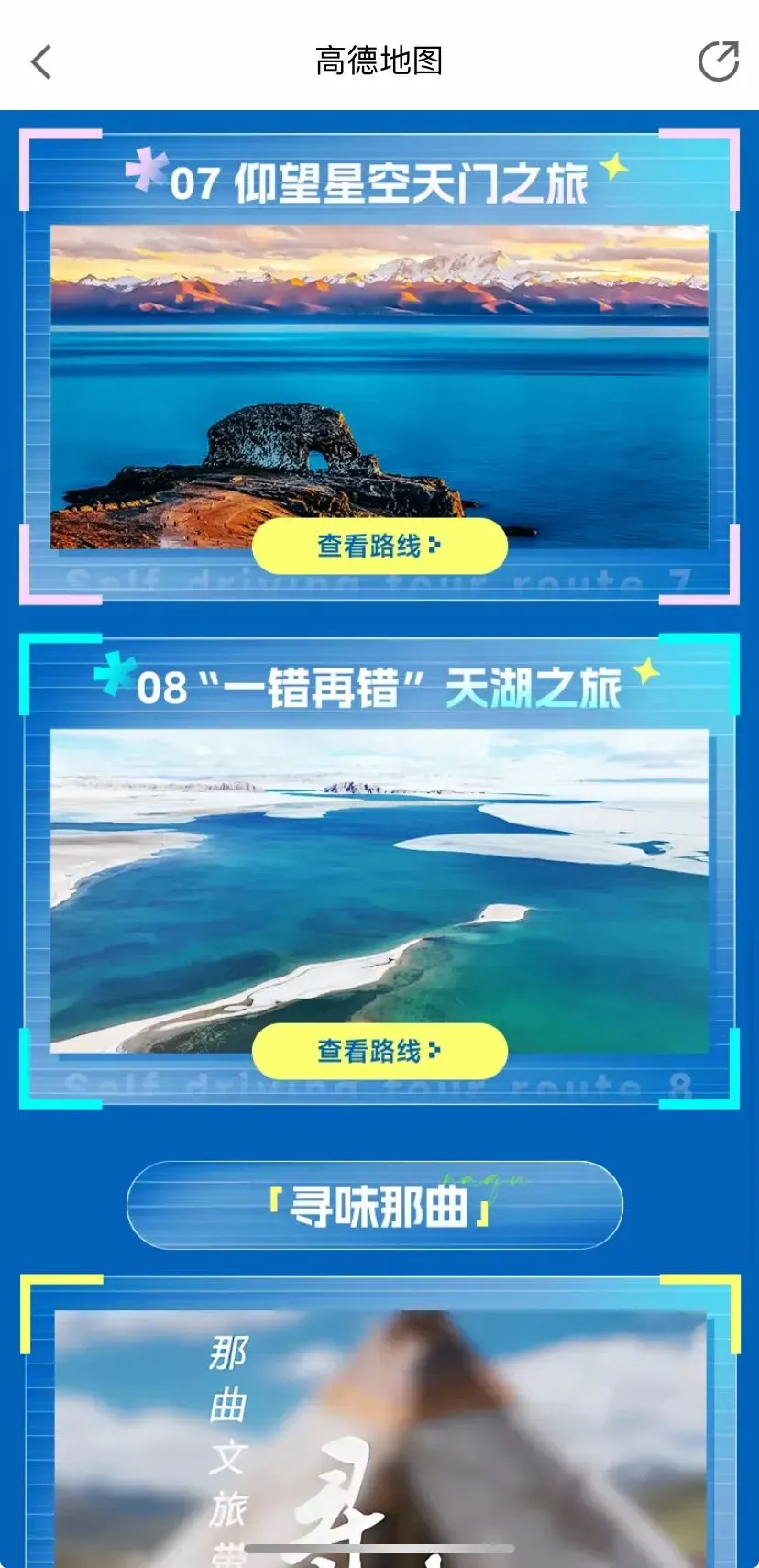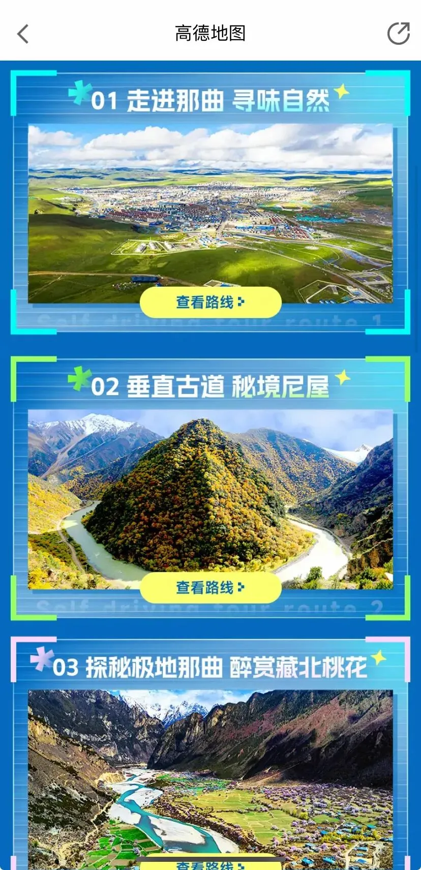 即日起,体验“智慧那曲”专属导航!只要你进入【那曲自驾旅游线路指南】,点击如下所示图片,可一键跳转【抖音官方号】。