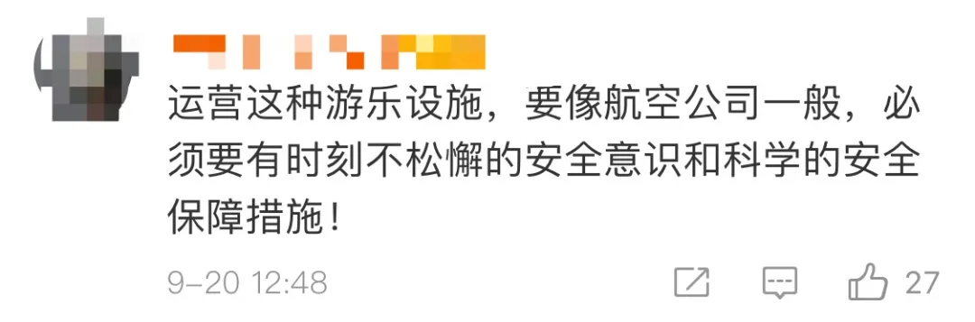 据了解,重庆奥陶纪公司还曾因违反《中华人民共和国安全生产法》遭到停业、罚款等行政处罚。2018年10月11日,重庆市万盛经济技术开发区旅游发展委员会责令该公司“极限飞跃”项目、“步步惊心”项目停业整顿;2019年4月30日,万盛经开区旅游发展委员会责令该公司18米悬崖秋千、21米悬崖秋千立即停业整顿。 网友纷纷为此事感到痛心,并表示运营这种游乐设施,必须有时刻不松懈的安全意识。