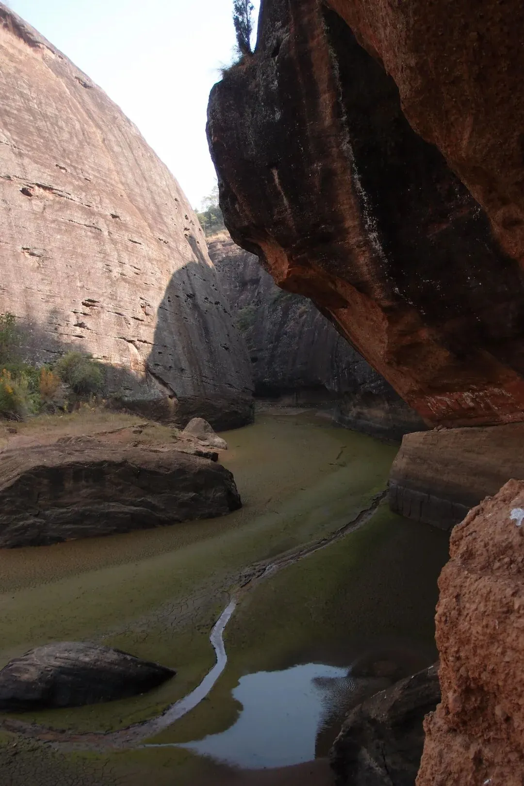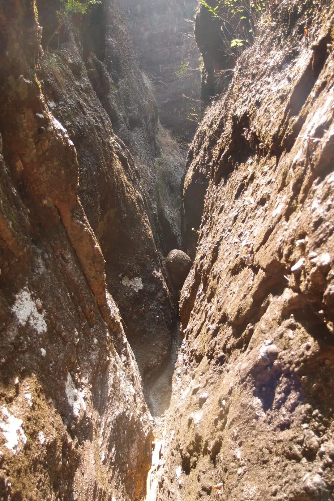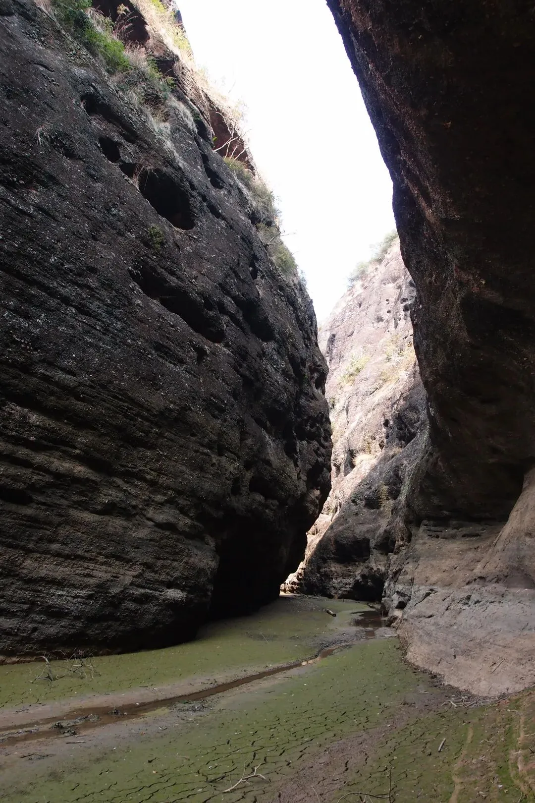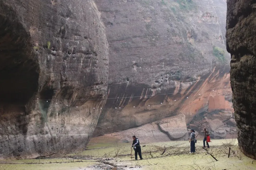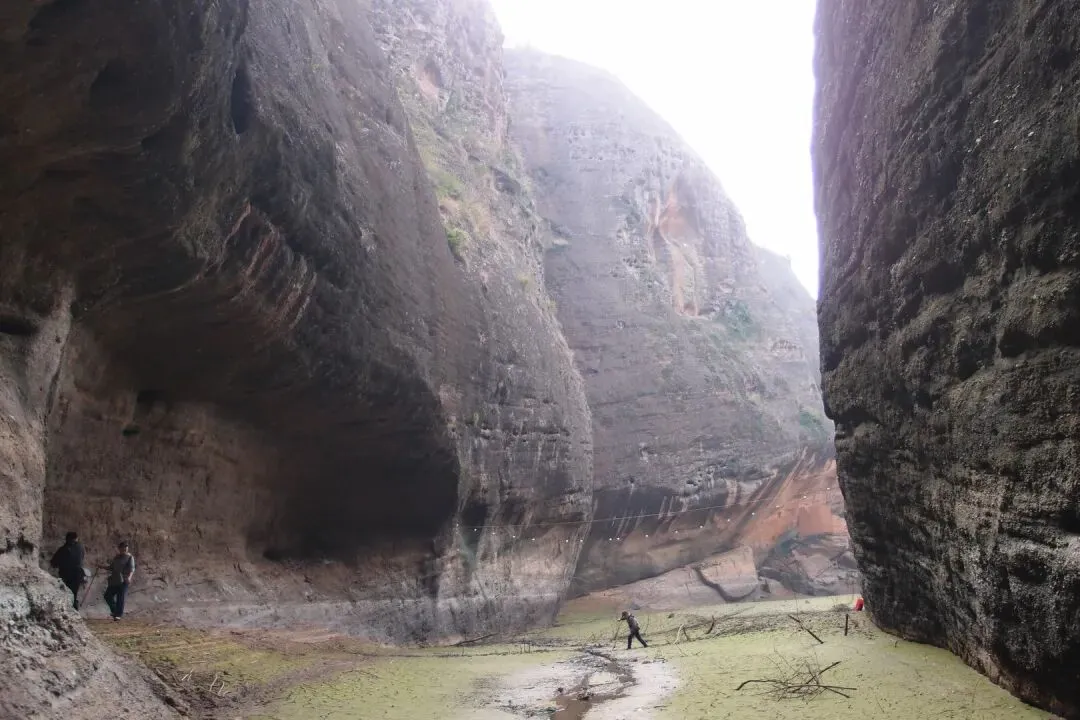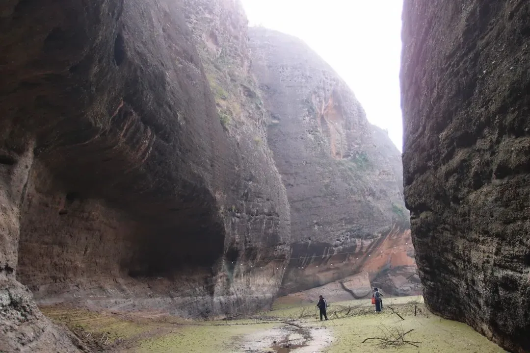 我和驴友随心脱了鞋袜往峡谷深处走。虽然是冬天,今天水温不是特别冷,但是越往里走,泥巴越是软,很多地方深过了膝盖。