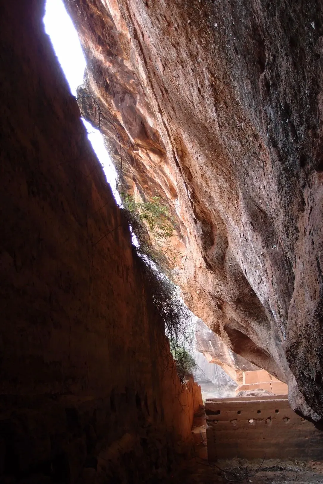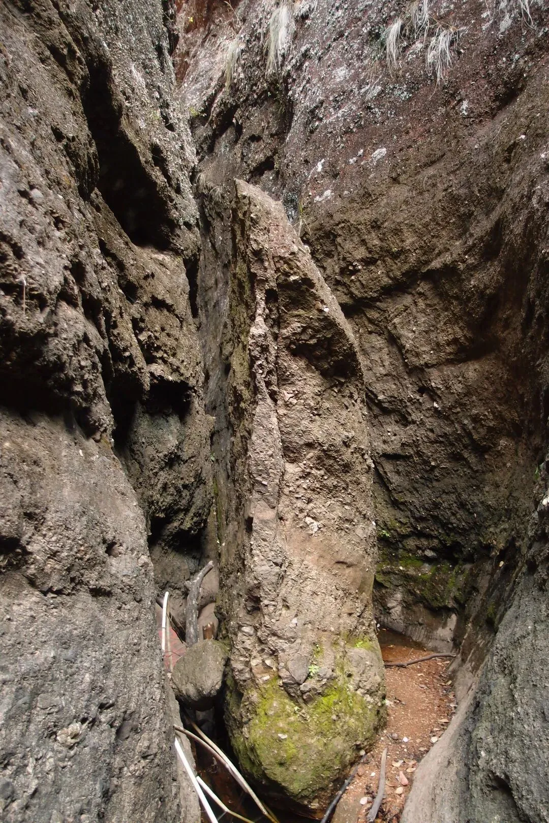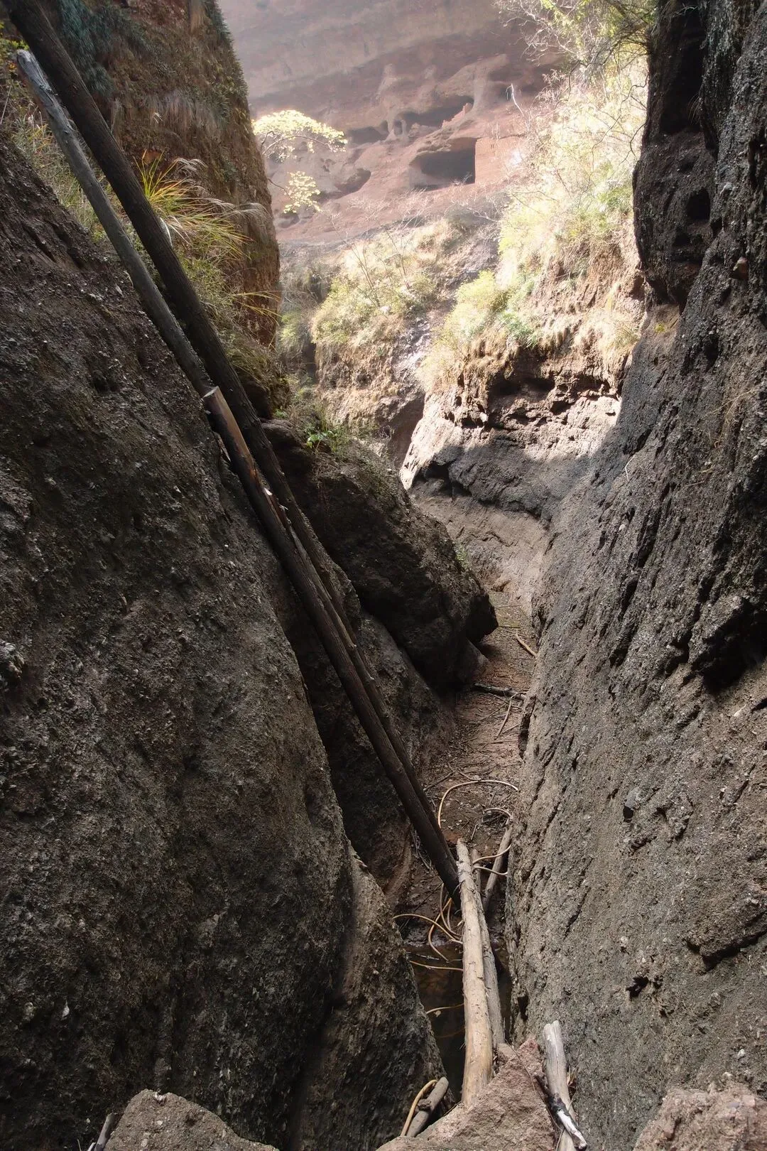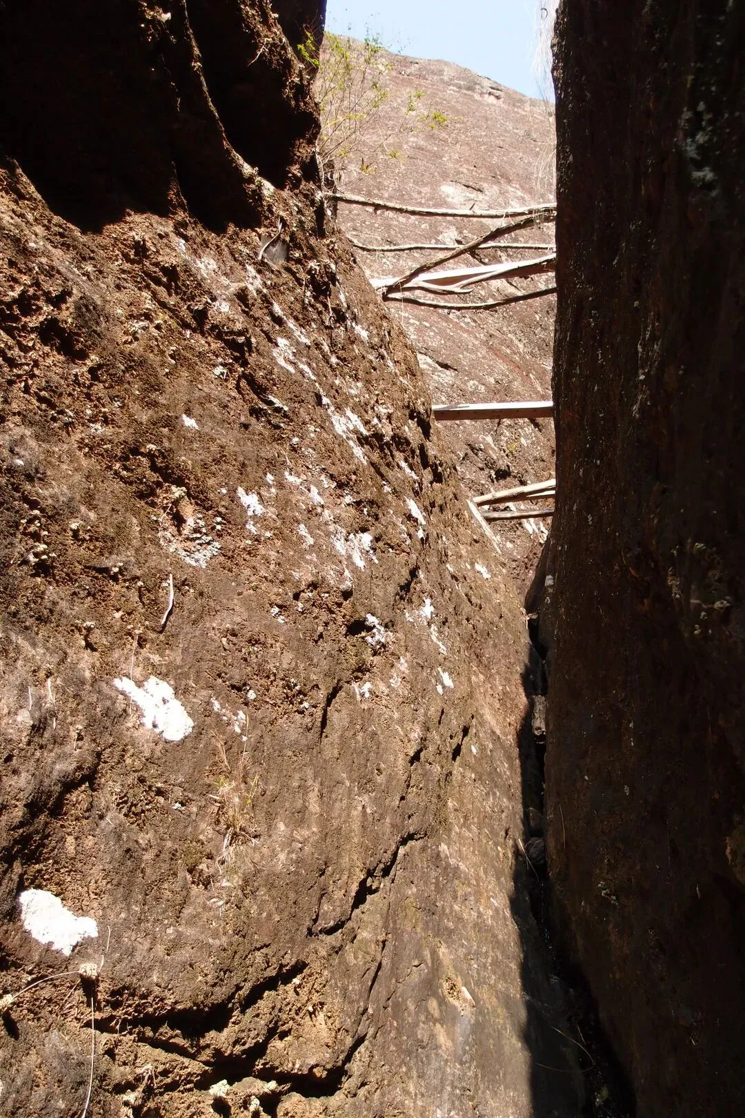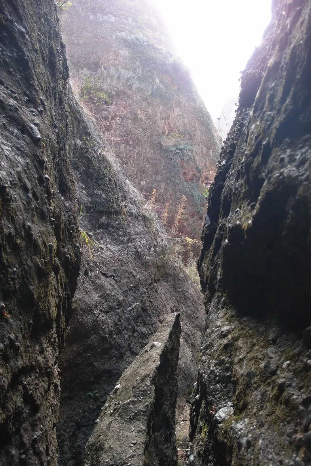但是并没有路上去。随心找了一条岩石的狭缝处,往上攀岩,有些地方特别陡,有人固定了一根皮管,可以当绳索用。