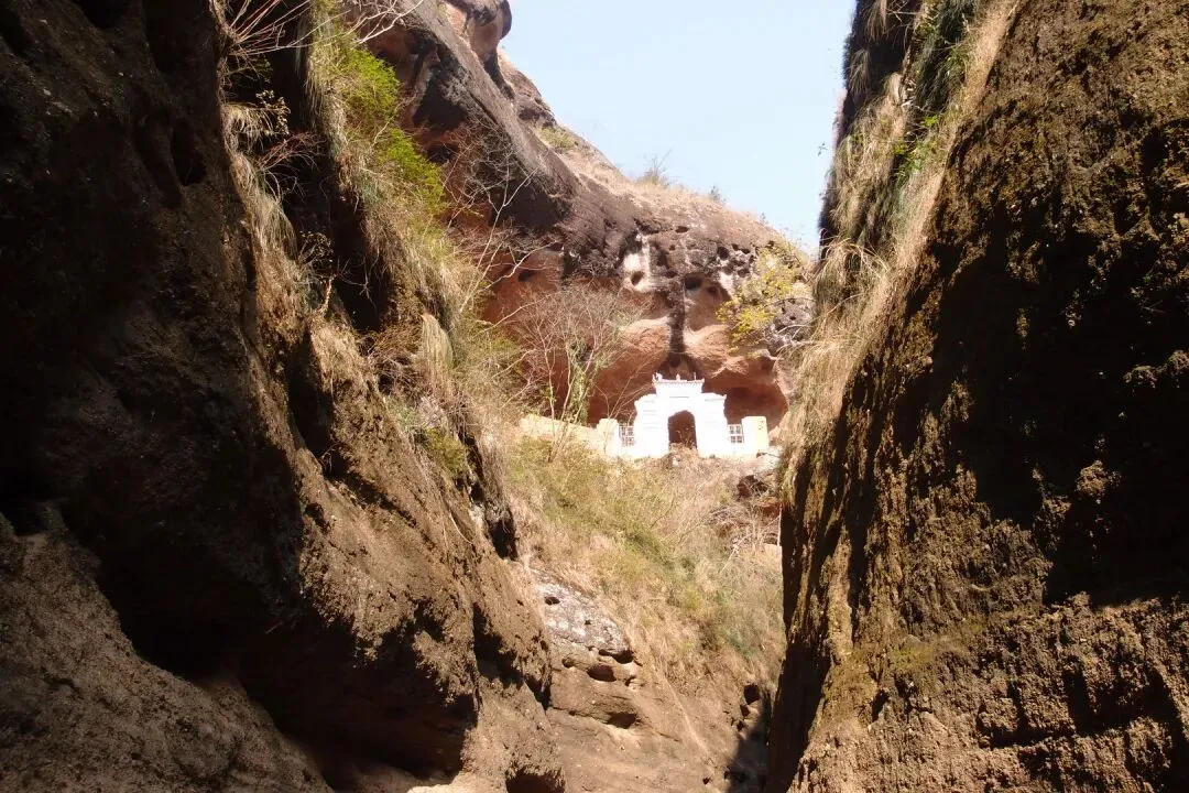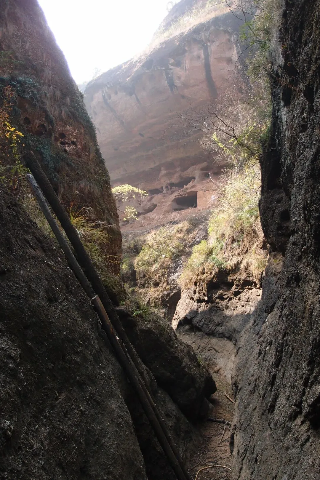 就这样,经过了沼泽,到了峡谷的深处,远处已经可以看到令公岩在半山腰。