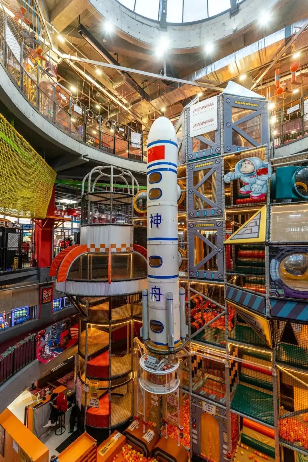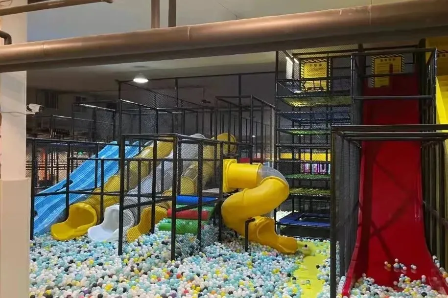 蹦床、滑梯、高空索道、攀岩、足球、乒乓球....不限次数随意玩,几乎不排队,每个项目每个区域都有工作人员维持秩序并且指导设备使用,安全指数max!